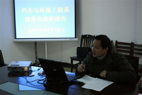 为加强和改进汽车与环境工程系学生思想政治工作,充分发挥政治辅导员的工作主动性与积极性,促进辅导员之间的交流与学习,2011年1月10日,汽车与环境工程系辅导员述职报告会在行健楼3楼办公室举行,述职会议由系党总支书记牛永惠同志主持。