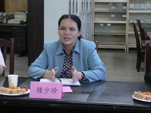 陈少珍主任介绍广西国际商务职业技术学院社会科学教学部、公共基础教学部基本情况