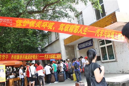 截止下午5点,汽车与环境工程系已经迎接了400多名新生,报到率喜人