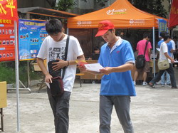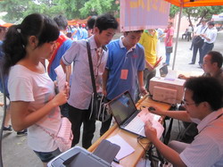 早上7:30开始,系党总支书记安掌明,系主任韦林,副主任李恒扬、王大红、陈华、汪少冲等领导到大本营指导各项准备工作,各专业团队负责人及2011级新生辅导员等50多名老师参加了新生接待工作,保障了新生报到、缴费、贫困生审核、外宿审批和转专业等工作的顺利进行。学院领导也走访了该系“大本营”,听取了系领导关于新生报到情况的汇报,并亲切慰问了迎新工作的师生。