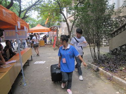 在报到现场、学院门口、缴费处……处处可见机电工程系的志愿者们,他们在这闷热的天气里挥汗如雨,他们不怕苦、不怕累,为新生带路,为新生搬提行李,为新生办理各种手续,解答新生种种问题……一位志愿者说道:“累,但却很快乐,我希望凭着自己的热情给新生们带来一个好的开始!”这就是该系的志愿者,为保证迎新工作的有序开展默默奉献。
