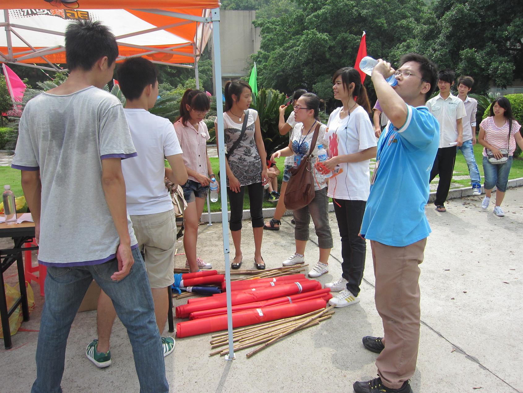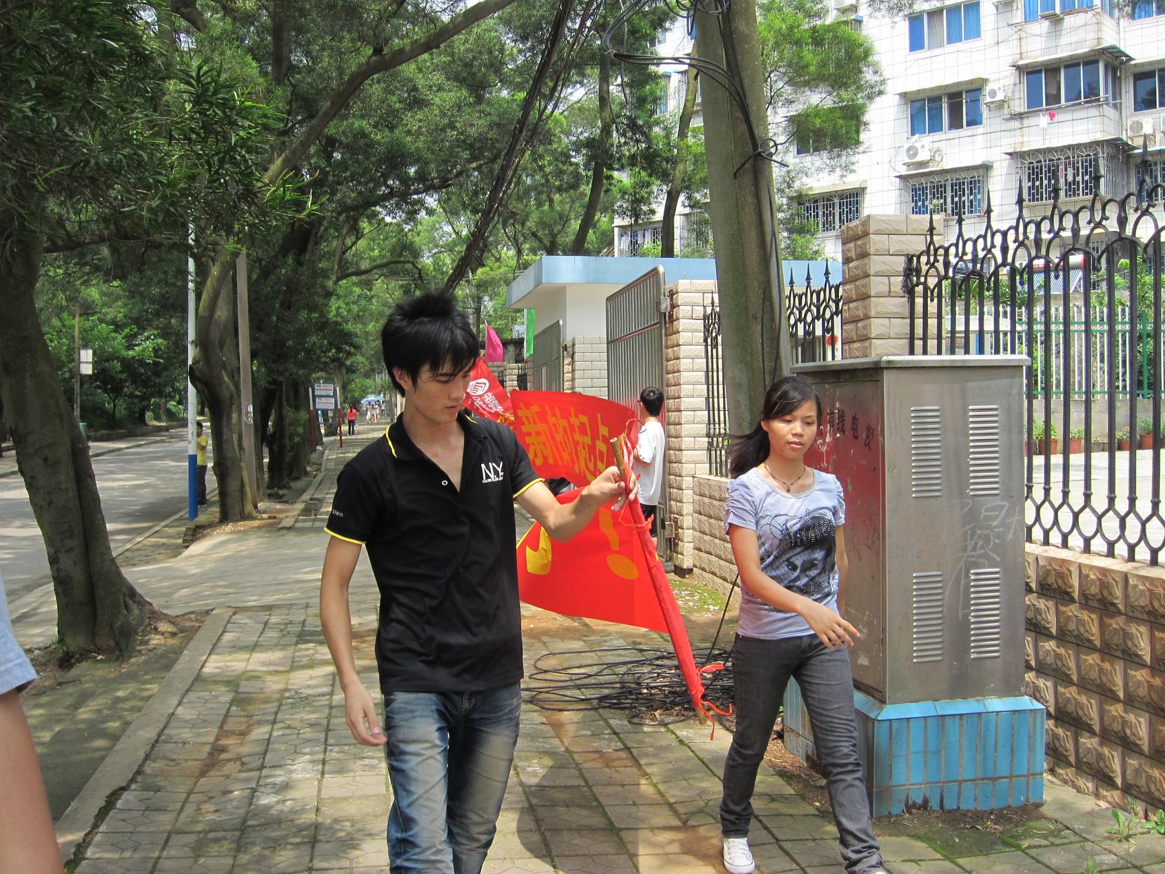 院学生会同学在分发横幅