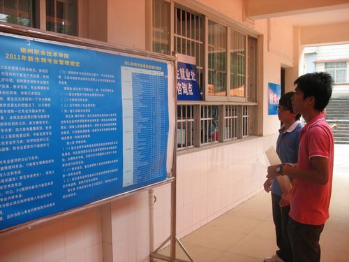 踏着青春的节拍,一批充满梦想、满怀激情的年轻学子踏入了充满激情活力的柳州职业技术学院,在这里实现他们的梦想。经历了“十年寒窗苦”,考入大学,对每个学生来说都是一件开心的事。然而,有些学生对专业不满意,还没开学,便忙着咨询转专业的现象。“进校后能否转专业?怎么转专业?”,有关转专业的帖子成为热门话题,更有不少新生向学院招生就业处打来电话进行详细咨询。针对新生转专业的情况,迎新期间,招生就业处在博闻楼101教室设置了咨询点,从新生入学开始就对他们进行职业生涯的指导,对他们提出的转专业的要求进行询问、解答及指导。各系均安排有相关专业教师接受新生咨询,为新生解疑答惑,让学生更加了解各专业。