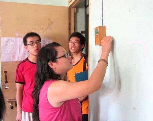 检查组老师对检查过程中发现的需维修的地方进行标识