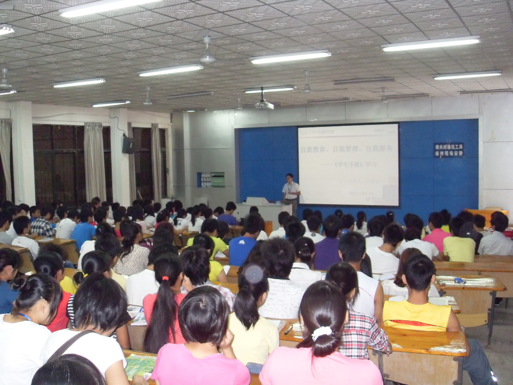 为了加强2011级新生对《学生手册》中相关规章制度和校规校纪的学习,强化新生的遵章守纪意识,同时让新生更快地融入新的大学生活,2011年9月19日上午,信息工程系在思贤楼阶梯教室举办了以“自我教育 自我管理 自我服务”为主题的《学生手册》解读专题讲座,讲座由新生辅导员江恩志老师主讲。
