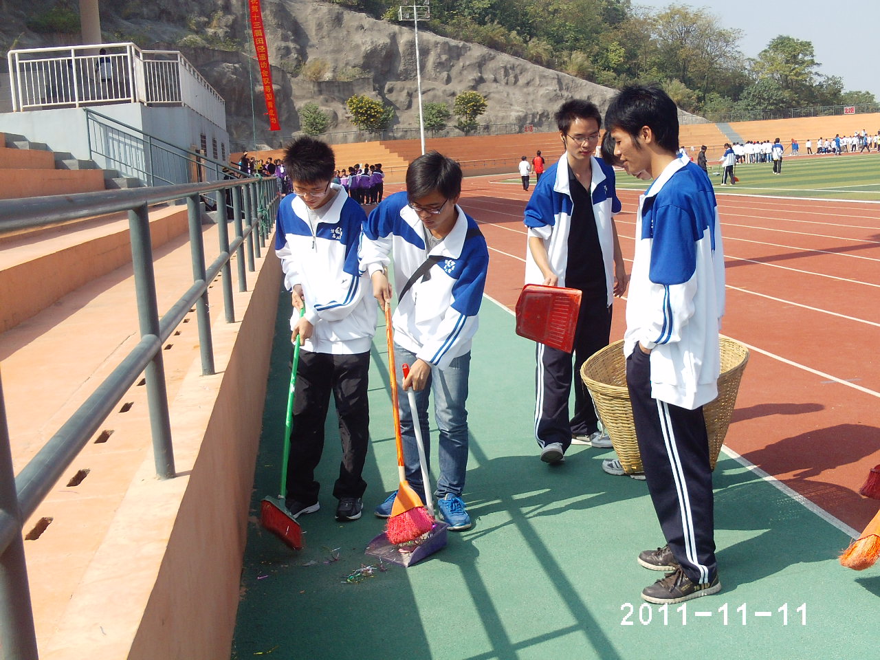 该系大本营里的党员服务专区是本届运动会上的一道独特的风景线,他们默默地付出,给运动员们提供周到细致的服务。在激动人心的时刻,他们引导拉拉队一起为运动健儿们加油、呐喊、助威,无形中给健儿们增添了无穷的力量和战胜困难的信心和勇气。该系的青年志愿者分队也穿梭在运动场内外,清理每一个角落的垃圾,为营造整洁干净的运动场地提供了有力的保障。他们的付出,为该系在运动会上取得精神文明和运动成绩的双丰收打下了坚实的基础。