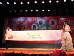 2011年12月29日晚,我院艺术校区大礼堂星光璀璨、灯火辉煌,一场以“谱写青春华章,讴赞美好未来”为主题的机电工程系庆祝2012元旦文艺晚会在此举行。柳州市鱼峰区依山社区党委韦佩委书记、杨图海副书记和覃敏华副主任,学院学生工作处唐冬雷处长、景凌凌副处长,汽车与环境工程系党总支杨琳书记、食品与环境工程系汪少冲主任、学院关心下一代委员会刘玉杰副主任,机电工程系党总支安掌明书记、韦林主任,学院团委韩霄老师、系办公室主任陈勇棠、学生科科长杨南和教务科科长高茂涛等出席了晚会,还有各系分团委书记,该系各科任老师、学生专干、辅导员,以及各系学生会代表、该系各班级学生代表等观看了晚会。晚会共持续了两个多小时,节目精彩纷呈,现场观众热情高涨。