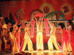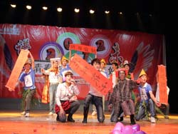 系大学生艺术团的情景剧《拒绝冷漠,传送温暖》,没有更多的艺术,却用最简单的方式表达了“小悦悦事件”,向大家倡导拒绝冷漠,续写人间暖意。辅导员老师们满脸笑容,手牵手一起歌唱《相亲相爱》,把晚会推向了高潮。随后,学院BTO街舞队给大家带来了街舞及2011数控技术5班表演了《火把舞》,他们充满动感的音乐和极富民族特色的歌舞,将他们的热情与节日的祝福传达给了在场的每一位观众。最后,礼花绽放,晚会以热闹喜庆的歌舞《恭贺新年》落下帷幕。