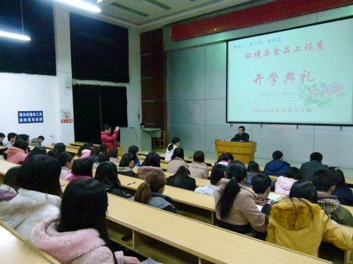2012年2月26日晚,博闻楼110教室洋溢着春的气息。环境与食品工程系全体师生在这里举行主题为“新起点,新目标,新辉煌”的开学典礼。