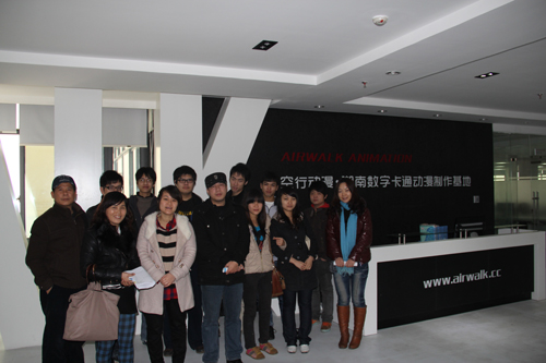 2012年3月20日至21日,在系教学副主任韦诗呐的带领下,艺术设计系谭江宁、韩仲博、雍佳3名教师与8名影视动画专业学生一行来到湖南长沙空行动画制作有限公司进行了为期三天的考察,此行该系对影视动画专业的人才培养与课程整合改革,与空行公司针对校企合作进行了研讨,达成了初步合作意向。考察期间,师生一行还参观了长沙民政职业技术学院艺术学院。