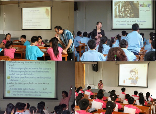 培训安排在三十中进行,由教科所教研员桂建楠老师和原三十九中梁百里校长担任专家,全程指导本次培训。三十中李禹海、覃莉萍等四名教师给培训学员进行两轮同课异构示范课展示,高复现、大容量、快节奏的高频操练教学法,在英语听说课和阅读课这两种课型中得到淋漓尽致的呈现。专家与学员在观摩第一轮示范课后,进行辩课互动,学员们热烈讨论,各抒己见,评价优缺点,提出修改建议。两位专家通过客观深入、全面细致的评课,从课前备课到课堂操练及效果,从英语语言学习规律到教学实践,与学员们进行广泛交流与探讨。第二轮同课异构示范课的教学内容与第一轮一样,但是明显看出,在吸取专家及学员们的建议后,授课教师对原课进行了整合和修改,对教学内容进行了深入挖掘和精心设计,师生互动良好,取得了更好的教学效果。