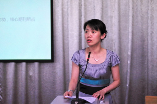 陈芳副主任在会上作了《公共基础部(思政部、素质教育基地)2008-2011年科研工作总结报告》。她在介绍部门在2008年来的科研工作基本情况时指出,2008年来,公共基础部高度重视科研工作,通过宏观指导、加强监控,建立了科研促进机制,通过各种教研活动及教师培训,不断提高教师队伍科研认识、促进观念转变,增强科研工作自觉性,通过开展科研师徒结对活动,导师悉心指导,徒弟虚心学习,导学相长,实现科研师徒双赢目标??蒲泄ぷ鞯目?,促进了教师教研、科研能力和水平提升,开创了教学与科研两促进、双丰收的新局面。陈芳副主任在报告中详细列举了公共基础部2008年来各教学团队老师在各类学术期刊公开发表的论文、出版的著作、教材、参与的各项课题、获得的各种科研奖励情况,通过对各教学团队教师公开发表的论文、公开出版的著作、教材、各级课题及科研奖励数据的对比分析以及教学团队开展科研工作的做法,总结了各教学团队在科研工作方面的成功经验,同时也指出了各教学团队及教师在科研能力与科研水平、科研成果的质量与水平、师徒之间的指导和交流以及团结协作的力度与范围等方面存在的不足。报告最后,陈芳副主任对全体教师今后的科研工作提出了五点要求:一是要坚持精品意识,倡导宁静致远的精神;二是要讲求精品意识,倡导勤于治学的精神;三是要提升质量要求,倡导兢兢业业的精神;四是要发挥科研导师传帮带作用,倡导诲人不倦的精神;五是要建立跨学科互动机制,倡导同心同德的精神。