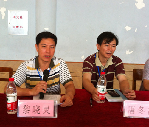 系党总支副书记黎晓灵(左)发言