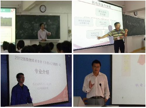 为使新生们更了解并热爱自己的专业,培养学生的职业意识和专业兴趣,养成严谨浓厚的学风,机电工程系在新生入学后不久便开展了新生专业入门教育的第一堂课——专业介绍会。专业介绍会在2012年9月17日上午8:00-11:40按专业分12场进行,主讲教师由机电工程系多位经验丰富的专业带头人担任。