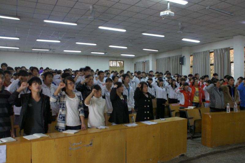 12月14日下午15时,我院2012-2013学年秋学期新团员入团宣誓仪式在旧阶梯教室举行。学院团委书记王慧出席仪式并致辞,院学生会、各系学生代表以及2011、2012级新入团的200名同学共同见证了本次入团宣誓仪式。