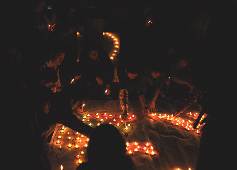当晚19点30分,活动在一场以“环保、个性、生活”为主题的开场秀中拉开了序幕,志愿者们利用废弃报纸、纸张与彩色丝带制成了环保服装进行展示。随后,主持人向到场同学们介绍了人类赖以生存的地球的现状,这让在场的所有同学了解到地球母亲的窘困处境。在之后的地球日宣传活动中,20名志愿者面对面手牵手排成两列,一个绘满了地球地质地貌的圆球在大家的手臂中传递,此举表达着人们共同呵护地球,传递信念,爱护地球的美好祝愿。第二个集体活动是“点亮地球”,志愿者们事先用一张大纸将五大洲、七大洋的颜色绘出,并在每个版块上放置心愿蜡烛台,现场的同学们一起上前点亮蜡烛,届时地球各大洲大洋以及中华儿女的“环保中国梦”在这个特殊的夜晚闪耀起来,一个由星火燎原组成的“地球”也呈现出来了?;疃詈螅芍驹刚叻褡芏佣映の忪癯愦烊航谢繁P?,整场活动落下完美序幕。