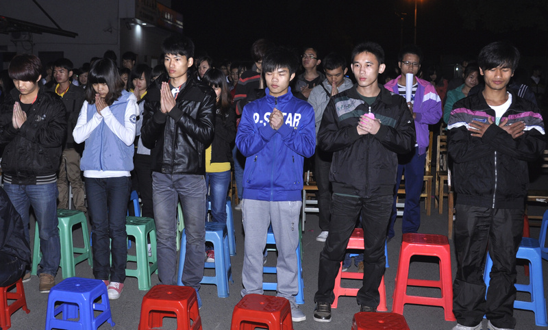 自芦山地震发生后,我院团委立即组织院青年志愿者总队在校园开展公共性的集体祈福活动。21日晚,在“我的梦——点亮地球,共建美好中国”主题地球环保宣传活动现场,柳州市红十字会代表覃国际队长与到场参加活动的我院50名学生在现场共同为雅安同胞祈福,同学们在舞台中央摆放了一个“心”型烛台,大家以爱的名义共同上台点燃了蜡烛,点亮了梦想,为雅安同胞祈福,每个人心里也在默默地为雅安加油。22日晚,汽车工程系学生会在竞择楼前也组织了近200人为雅安地震灾区的同胞们祈福,为遇难者默哀。