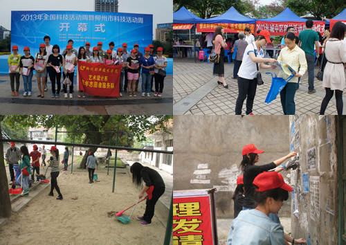 践行“中国梦”:艺术设计系青年志愿者开展清洁校园、服务社区、服务柳州市科技活动周等活动,入党积极分子以?;せ肪?、弘扬美德为主题,举行公益广告设计比赛、手机拍客摄影比赛、公益广告词比赛,同学们用青春汗水努力践行 “中国梦”。