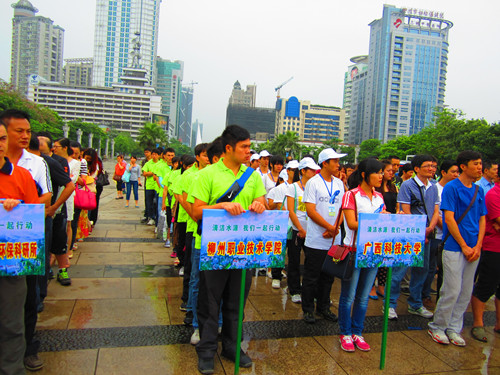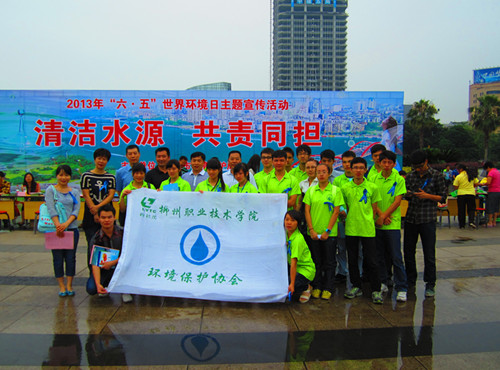 6月2日上午,在世界环境日到来之际,我院环境保护协会在环境与食品工程系分团委书记黄姿梅老师的带领下,前往柳州市人民广场参加 “六·五”世界环境日主题宣传活动。此次活动由市环境?;ぞ种靼欤浴扒褰嗨?,共责同?!蔽魈?,通过现场发放宣传资料、接受环保咨询和投诉,为市民解答环境?;さ认喙匚侍?,旨在促使更多市民成为珍惜和保护水资源的宣传者、实践者 。副市长陈鸿宁出席了启动仪式,他真诚希望全市各行各业以及广大群众行动起来,共同投身到“清洁水源 ”工作中来,为建设“美丽柳州,清洁乡村 ”而不懈努力 。
