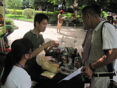 当天上午,在系团委学生会的组织带领下,该系学生会干部、青年志愿者、受资助学生一起前往和华社区开展环保宣传、清洁社区等志愿服务活动。上午8时,同学们按时抵达和华社区,并分组有序地开展活动。一是清洁社区,清除社区里的牛皮癣广告。二是充分发挥专业知识进行环保宣传,发放环保小知识宣传册,向居民介绍如何酿制葡萄酒并发放酿制葡萄酒、如何快速检测牛奶新鲜度、一次性筷子硫化物检测实验等?;疃谌萦刖用袢粘I盍到裘?,吸引了众多居民驻足观看。尽管活动让同学们个个忙得不亦乐乎,闷热的天气让人汗流浃背,但能发挥专业知识的作用,为社区做一些力所能及的事情,同学们都干劲十足。