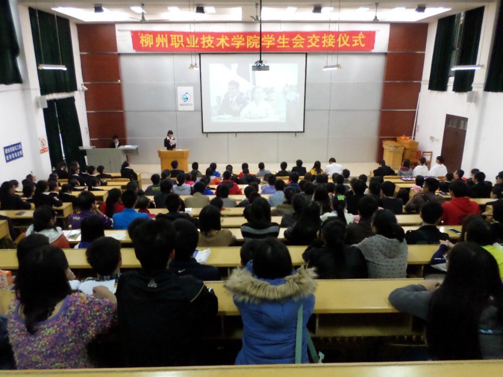 2013年11月23日下午,院学生会交接仪式在博闻楼110举行。院团委办公室主任杨小浒老师与院学生会全体成员及各系部、各社团代表200余人参加。