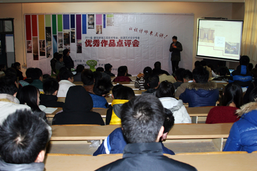 上午9点, 艺术设计系2014届毕业设计作品展演活动暨优秀毕业设计作品点评会在NJ1-110大教室拉开帷幕,柳州市建筑装饰协会常务副会长、广西雅士达装饰工程有限公司总经理伍卫平先生,陨石设计公司的陈力诗先生等专家到场,对20件优秀毕业设计作品进行点评。作者先讲解自己的设计理念、思路和风格等,专家现场详细点评并打分,告知设计者如何去完善作品,并对他们将来的学习和设计提出建议和努力方向?!疤幌埃ざ潦晔椤钡母惺茉谙殖〗惶娉鱿?,现场气氛相当热烈,专家的精彩点评让同学们受益匪浅。