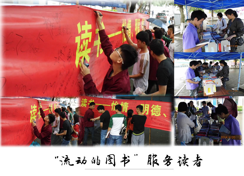 “流动的图书”、送书到宿舍现场借还、服务读者活动是图书馆工作人员首次走出图书馆,主动服务读者的一次尝试。他们精心挑选各类专业学习用书、名家小说、人物传记、历史和科技文化等方面的好书200多册,送至至善园宿舍门前进行现场借阅。在图书馆老师的热情指导下,许多学生纷纷驻足,有的饶有兴趣地在阅览,有的借到自己喜欢的图书,短短的两个小时,共计借还120多本图书。本次活动推广的书籍大都具有一定的代表性,是学生普遍喜爱阅读的好书。这样的贴身服务,既减少学生借阅图书的盲目性,又能在学生宿舍区实现“零距离接触”,极大地方便读者,同时也很好地宣传了图书馆的藏书。此次活动得到师生的一致认可,激发了图书馆工作人员专业服务的信心。为更好地宣传图书馆藏书,让更多的读者爱上阅读、享受书香,往后图书馆将每月开展一次“流动的图书”到宿舍现场借还图书活动。