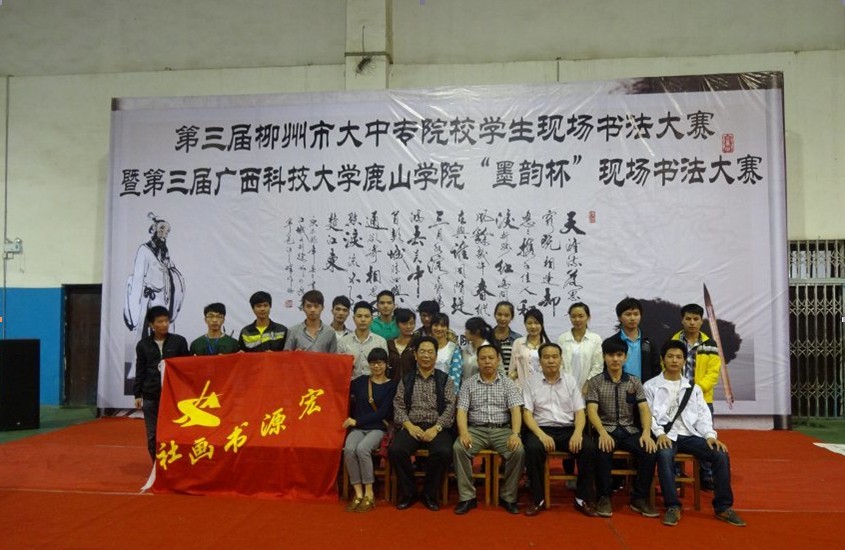 2014年4月26日,第三届柳州市大中专院校学生现场书法大赛暨第三届广西科技大学鹿山学院“墨韵杯”现场书法大赛在鹿山学院正式举办。我院宏源书画社30位社员应邀前往该校参赛,30名选手与柳州各大中专院校的书画协会现场角逐,最终我院宏源书画社6位社员在比赛中斩获多个奖项。