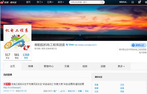 广泛利用微博进行实时宣传,将微博建设成为引领大学生思想教育的新阵地,符合新形势下校园宣传的大趋势,也是该系加强宣传工作的重心。自此次工作布置会后,机电工程系2012级、2013级各班均开通了班级新浪微博,并及时进行转播、互动,微博宣传工作取得阶段性成效。(文、图/ 机电系 丽娜)