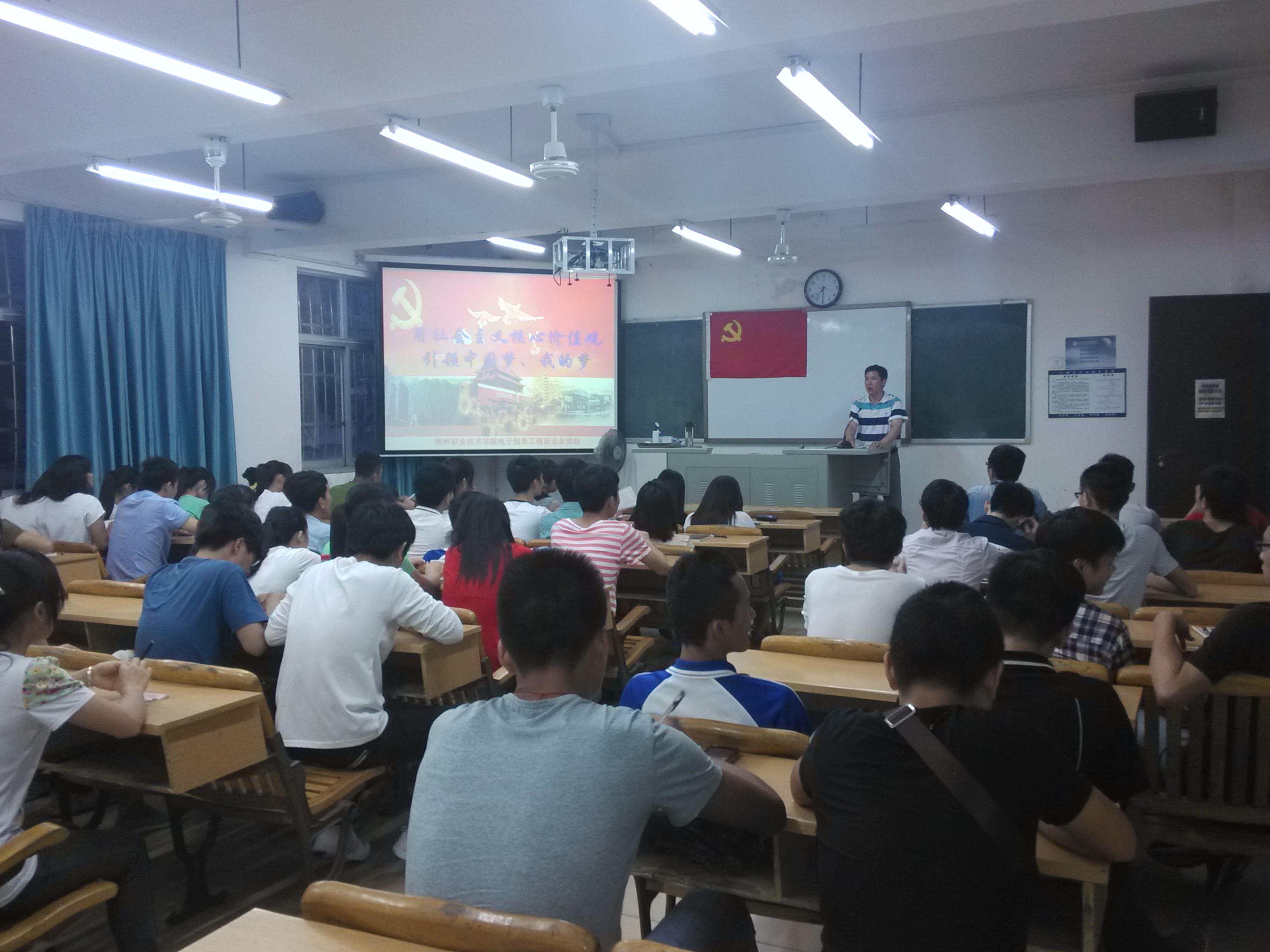 为深入学习贯彻党的十八届三中全会精神,进一步引导学生深入领会“中国梦”思想,6月11日晚7点30分,电子信息工程系分党校邀请该系党总支副书记黎晓灵在博闻楼104作了主题为“用社会主义核心价值观,引领中国梦,我的梦”的党课。该系入党积极分子、部分预备党员、部分入党申请人60多人到场聆听。