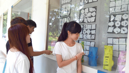 本次活动内容涉及多个专业、多门课程,全系学生参与人数多、参与面广,包括了三个内容:“课程教学成果展览”,涉及课程有《立体构成》、《POP招贴展》、《室内设计手绘》、《色彩》、《构成》、《童装设计》、《建筑装饰材料创意》、《陈设设计》等多门课程,近400人次参与活动,音乐团队的学生个人演唱会更是丰富了校园文化生活。