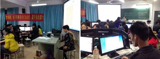 11月10日上午9时,离11月11日零点还差十几个小时,键盘敲击声已经在学院达理楼电子商务实训室此起彼伏,电子商务专业2013级50名学生客服和杭州订单班的学生同时进入备战状态?!岸_?叮咚”、“这个尺码有货吗?”、“双十一有什么优惠活动?”学生们手指不停地敲打着键盘,时而切换跳动的桌面对话框,开始了为买家提供售前服务。经过岗前的系列培训,学生们对如何处理买家咨询已经驾轻就熟。