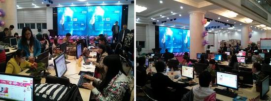 新闻网消息:(通讯员 朱汝群、韦晓霞、胡志仁 摄影/林志红、韦晓霞、胡志仁)11月11日,571亿成交额,中国最火爆的全民购物狂欢日,很多人都在“火拼”。而我院电子商务专业2012级杭州“订单班”及2013级在校学生也分别在杭州、宁波和柳州三地变身“店小二”,助力企业奋战“双十一”,“订单班”学生帮助公司实现了单日200多万的交易额,而2013级50名在校学生也完成了近80万的交易额。