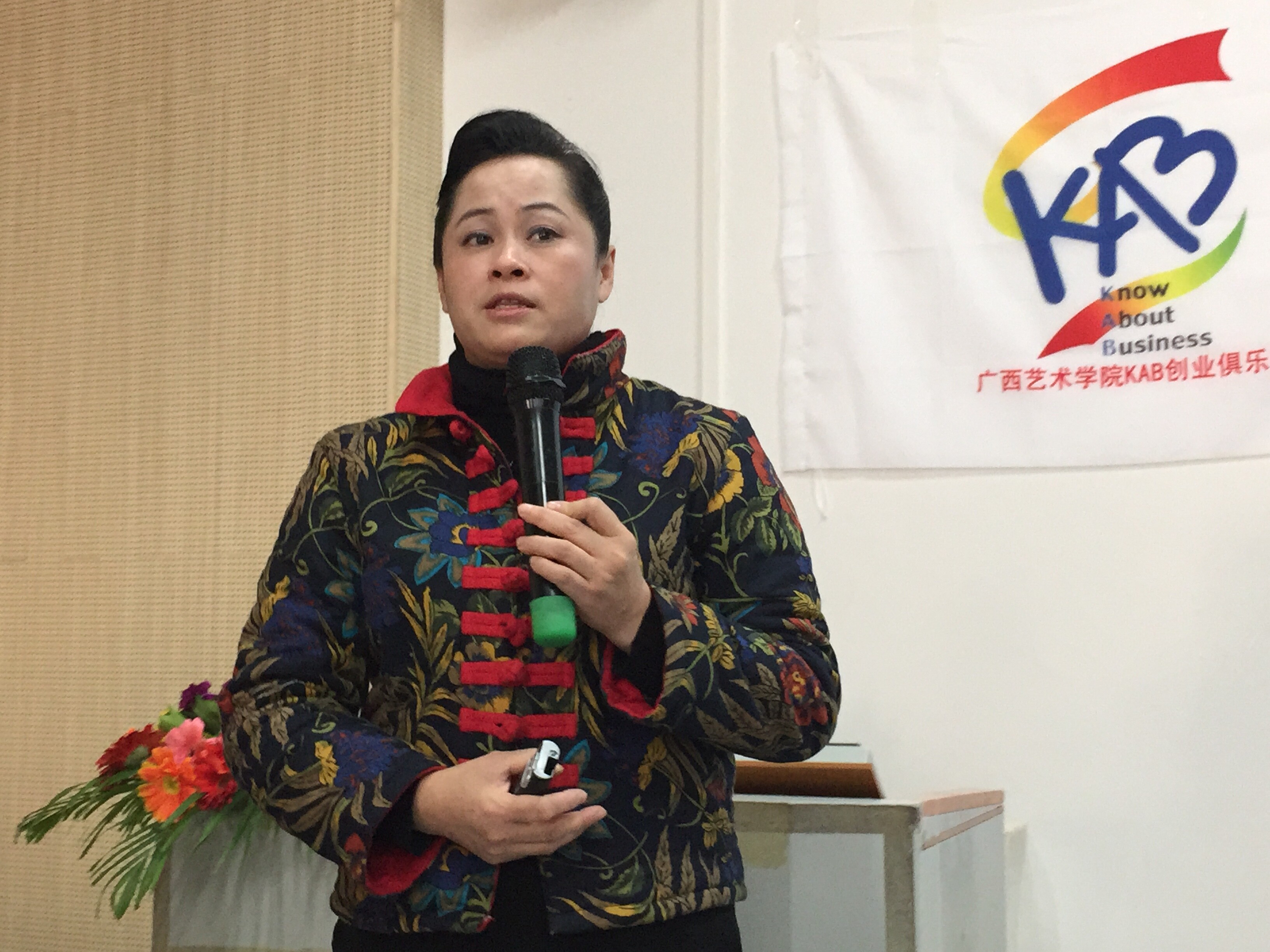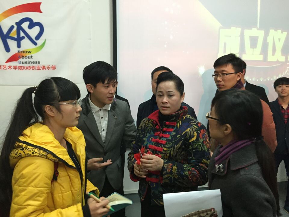 讲座师生互动热烈,许教授为同学们解答了很多就业方面的疑惑,精彩演说赢得在座师生的阵阵掌声。讲座结束后许明教授还受邀为广西艺术学院大学生KAB创业俱乐部成立剪彩。