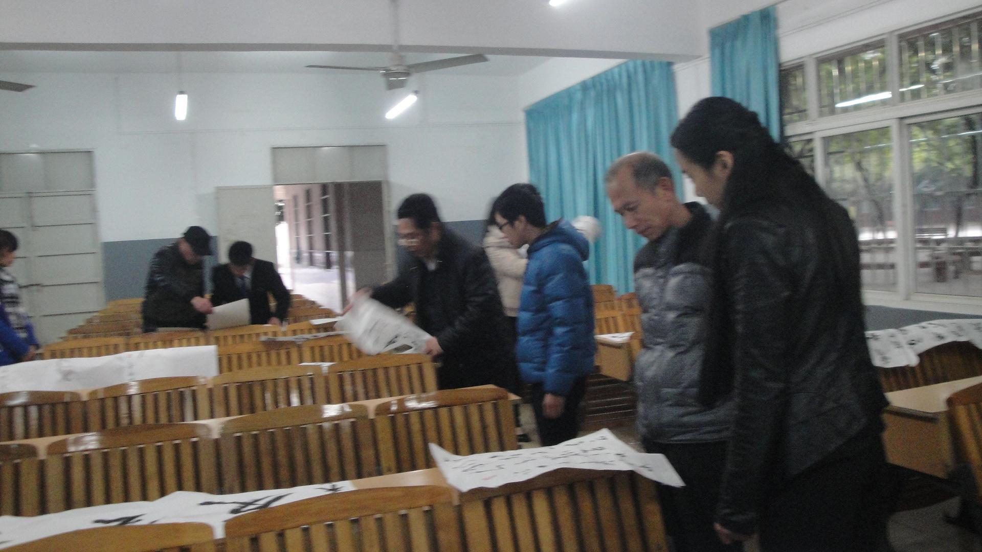 比赛当天,姜献生主任宣布比赛开始。参赛的同学在领队的带领下到达了各自的比赛场地,其中软笔和绘画在博闻楼大厅举行,硬笔则在德润楼104教室举行。参赛选手必须现场完成各自的作品,这不仅考验参赛同学的水平,同时也是对其心理素质的一种考验。比赛在一场无声却紧张激烈的比拼中结束,四位评审老师评出获奖作品。在长达一个小时的细致评审后,聂小婵、潘宝源两位同学获得了软笔一等奖,黄旭、黄华文同学获得硬笔一等奖,农银带同学则获得了绘画一等奖。