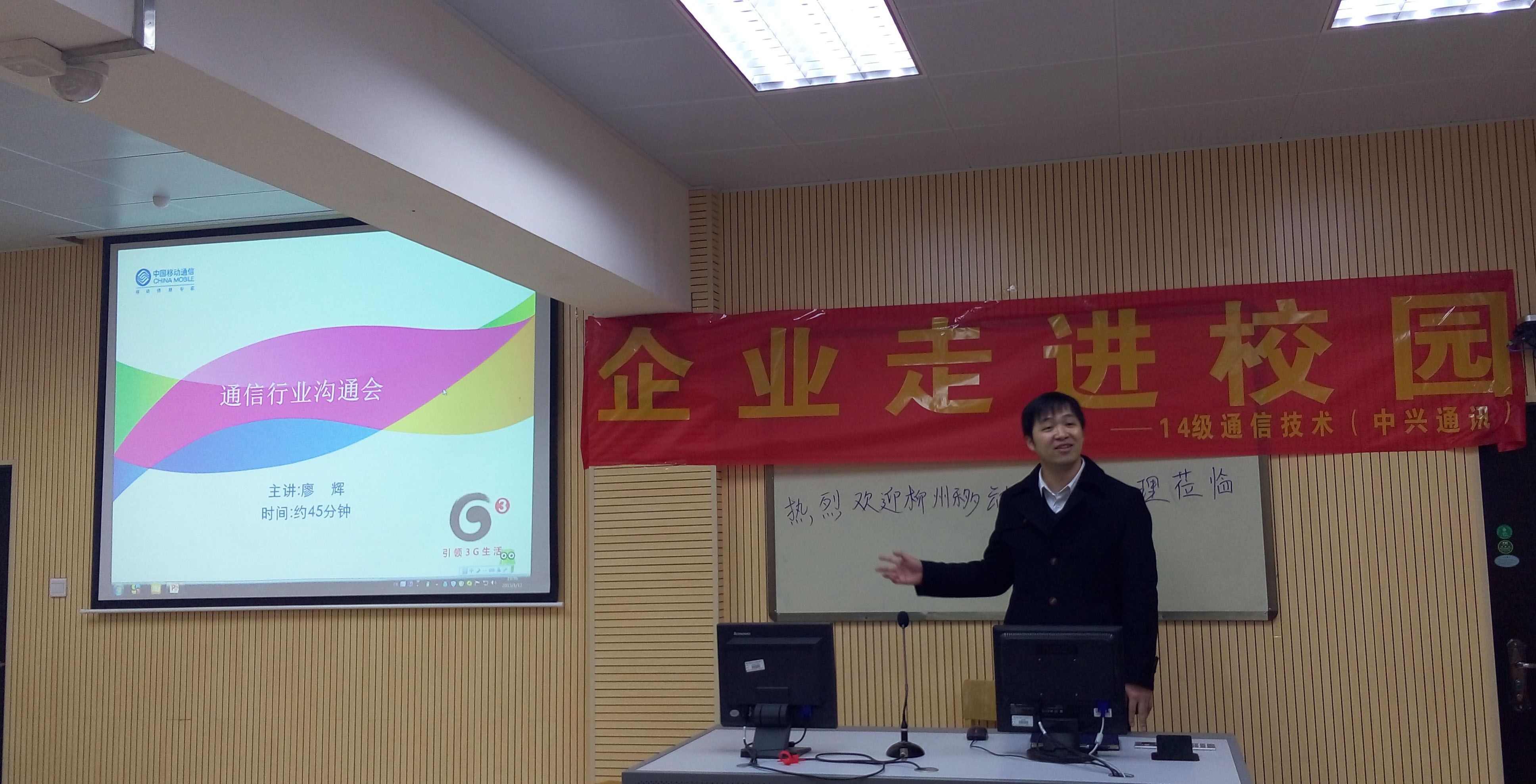 新闻网消息(通讯员 电信系 林国森)为了让同学们更近距离地接触到企业的气息,了解移动通信的行业发展,我院中兴通讯班的罗晓健老师特意请来了广西移动柳州分公司的全业务项目经理廖辉经理来为中兴班同学做讲座。