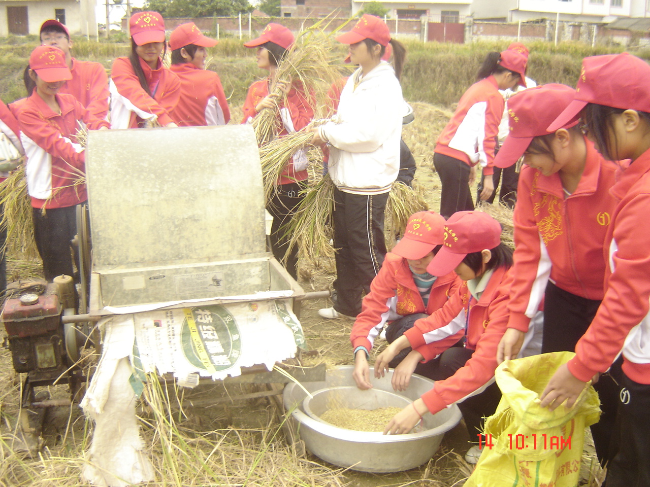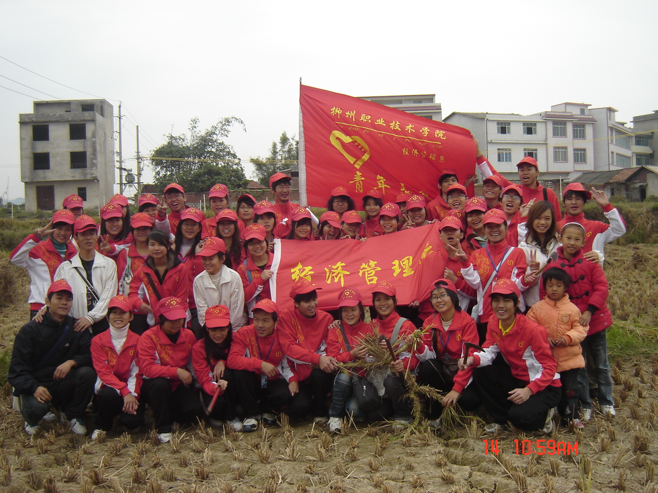 2009年11月30日上午,经济管理系团总支组织50名青年志愿者前往社湾村开展“三下乡”社会实践活动,本次下乡活动的任务是帮助当地农民收割稻谷。