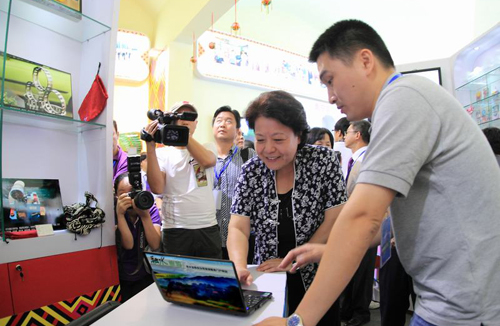 自治区李康副主席视察我院参加天津2012年全国职业院校学生技能作品展洽会展位
