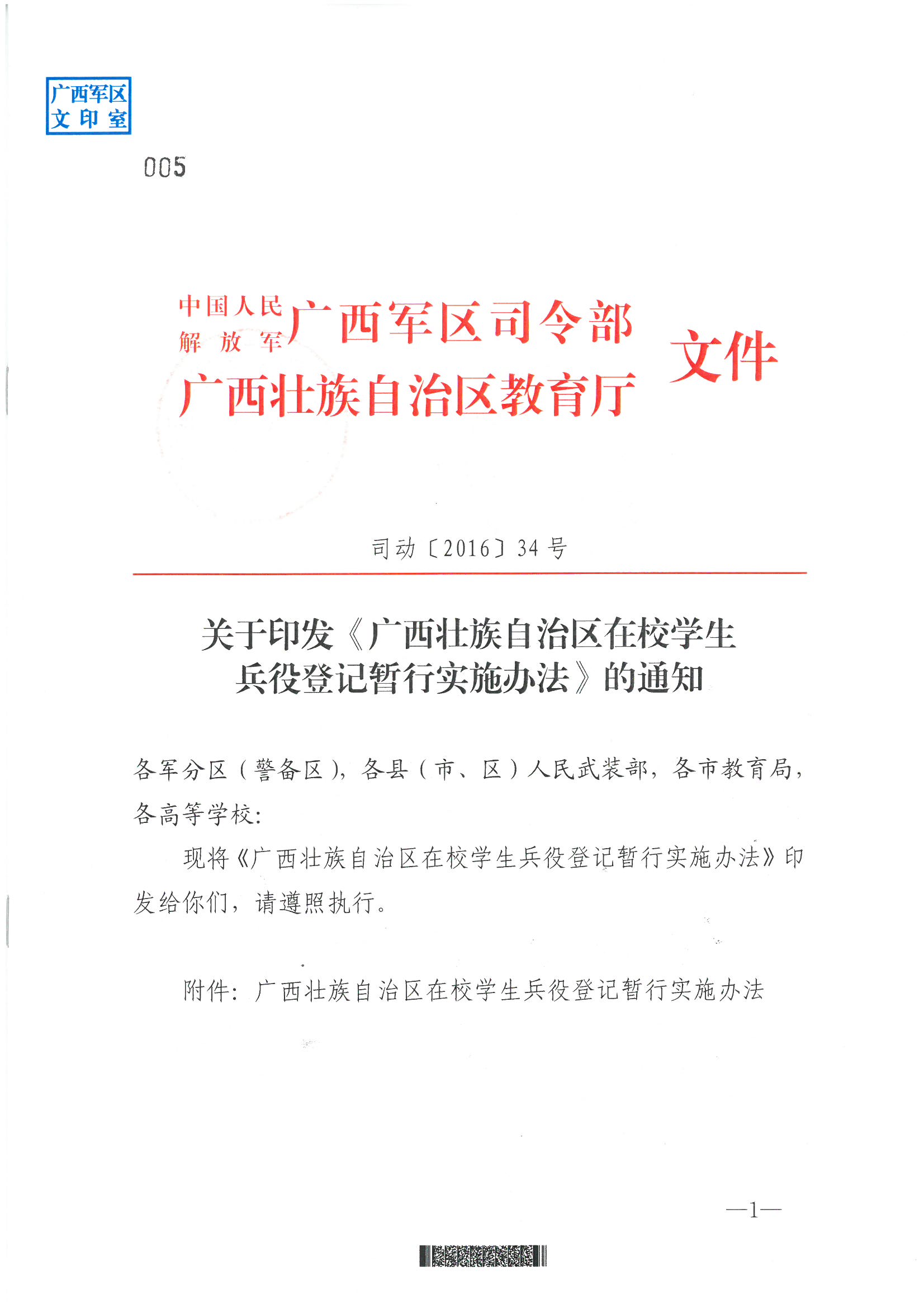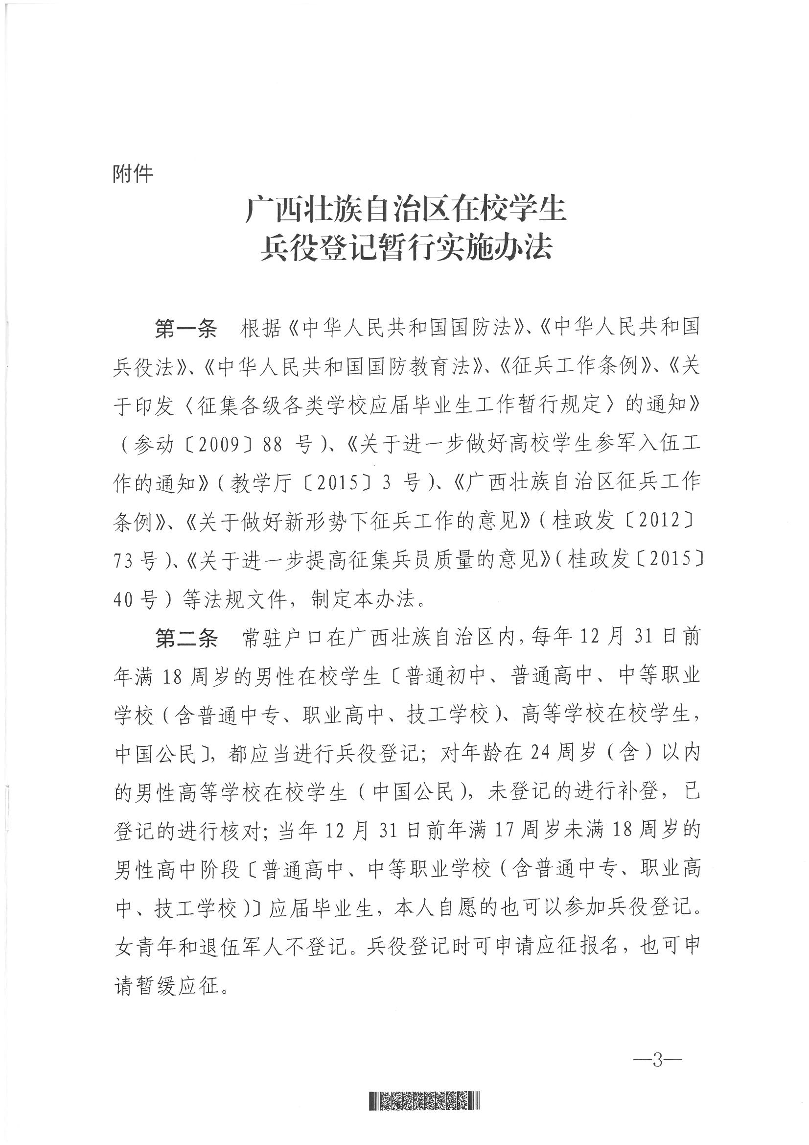 转发《广西壮族自治区在校学生兵役登记暂行实施办法》的通知