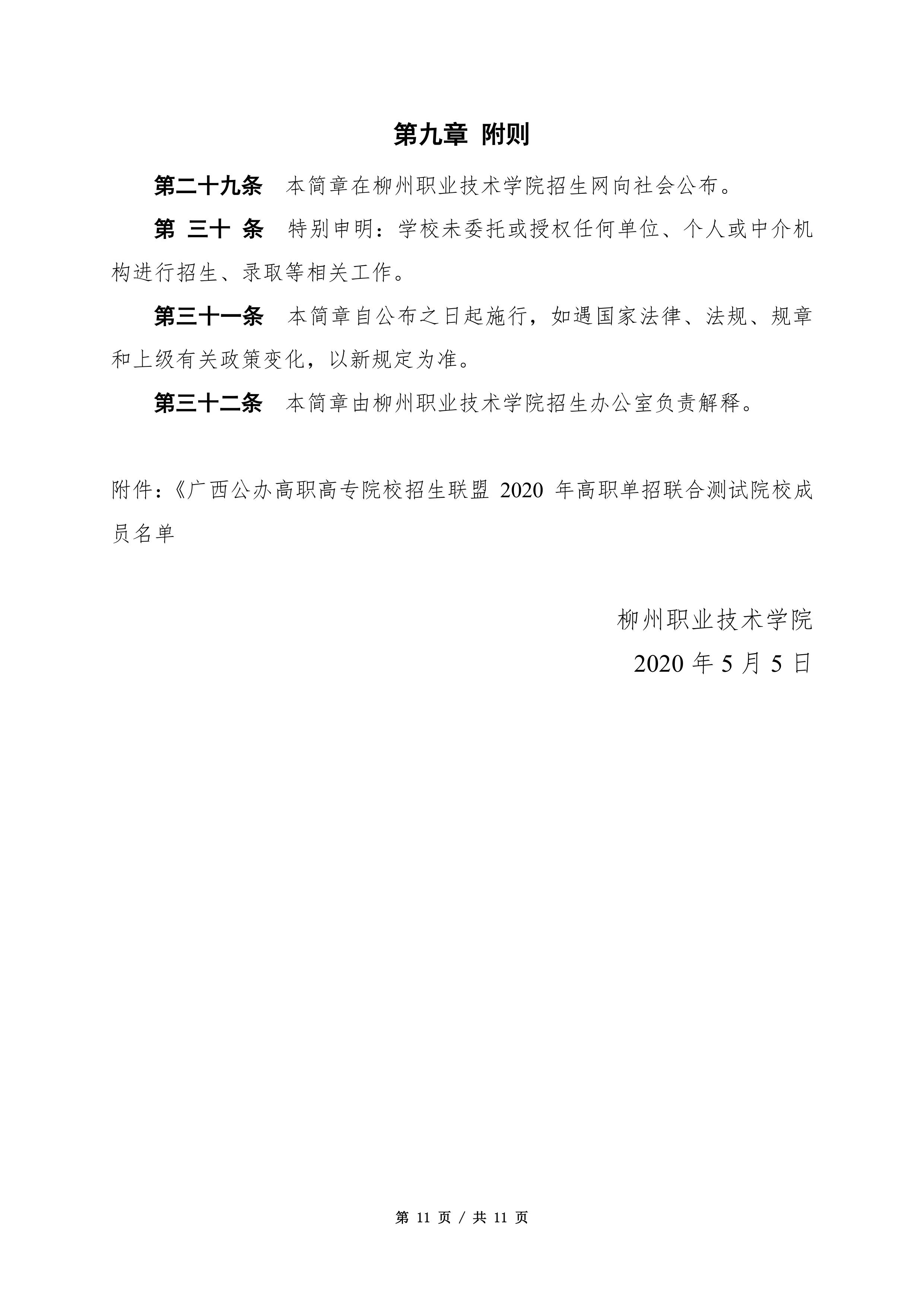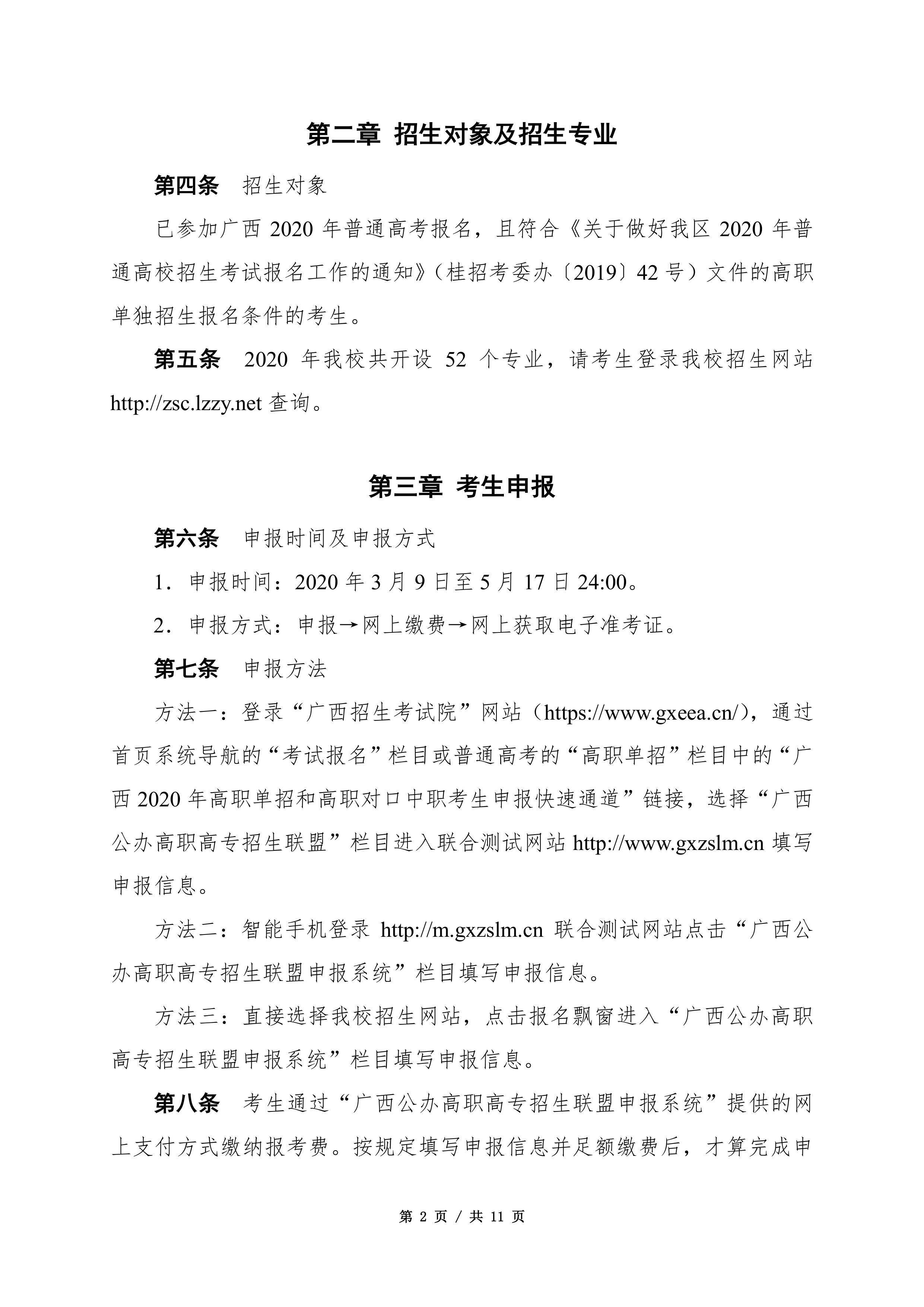 柳州职业技术学院2020年高职单招简章