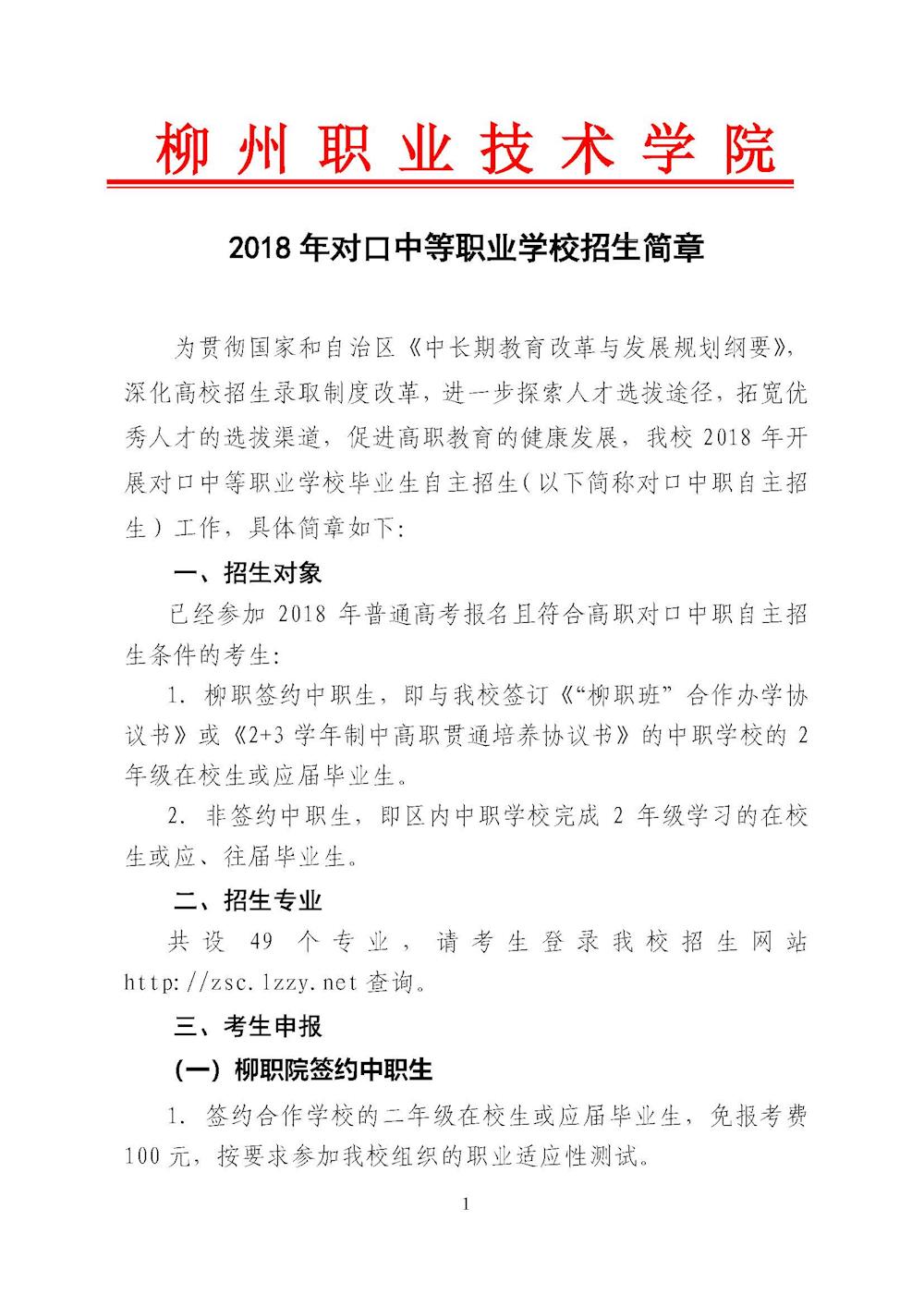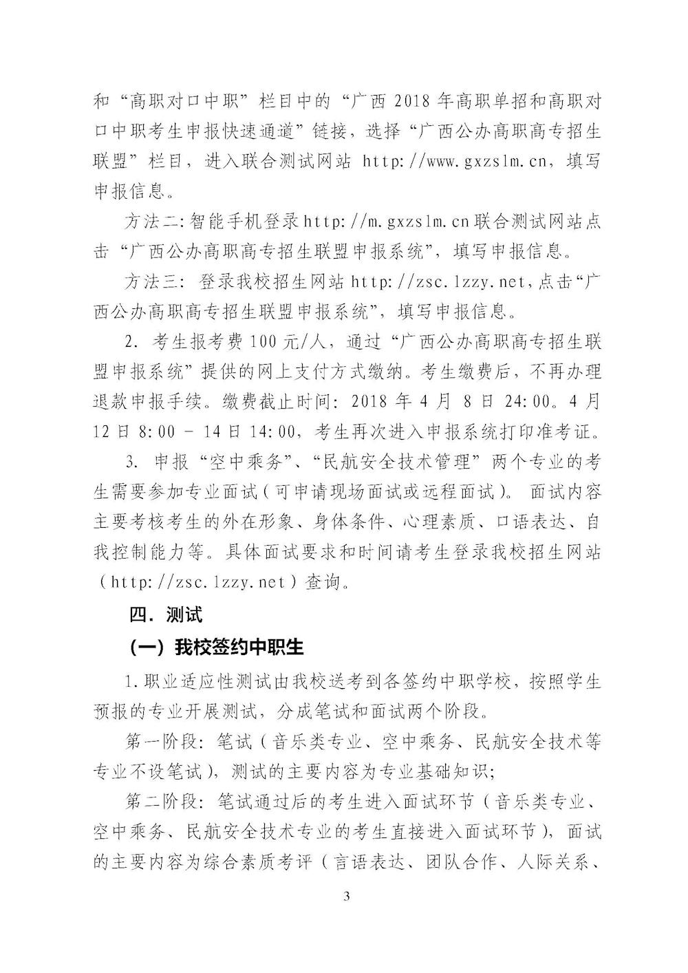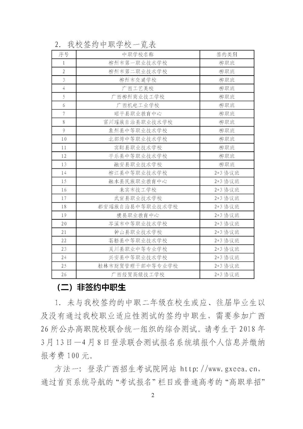 柳州职业技术学院2018年对口招生联合测试章程