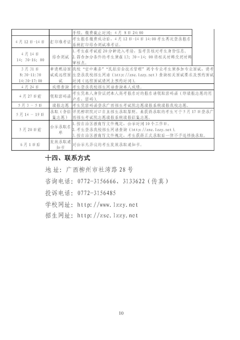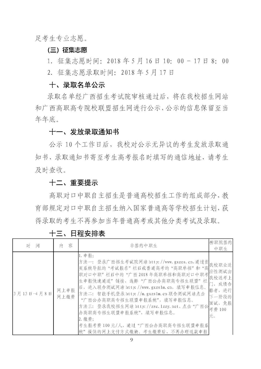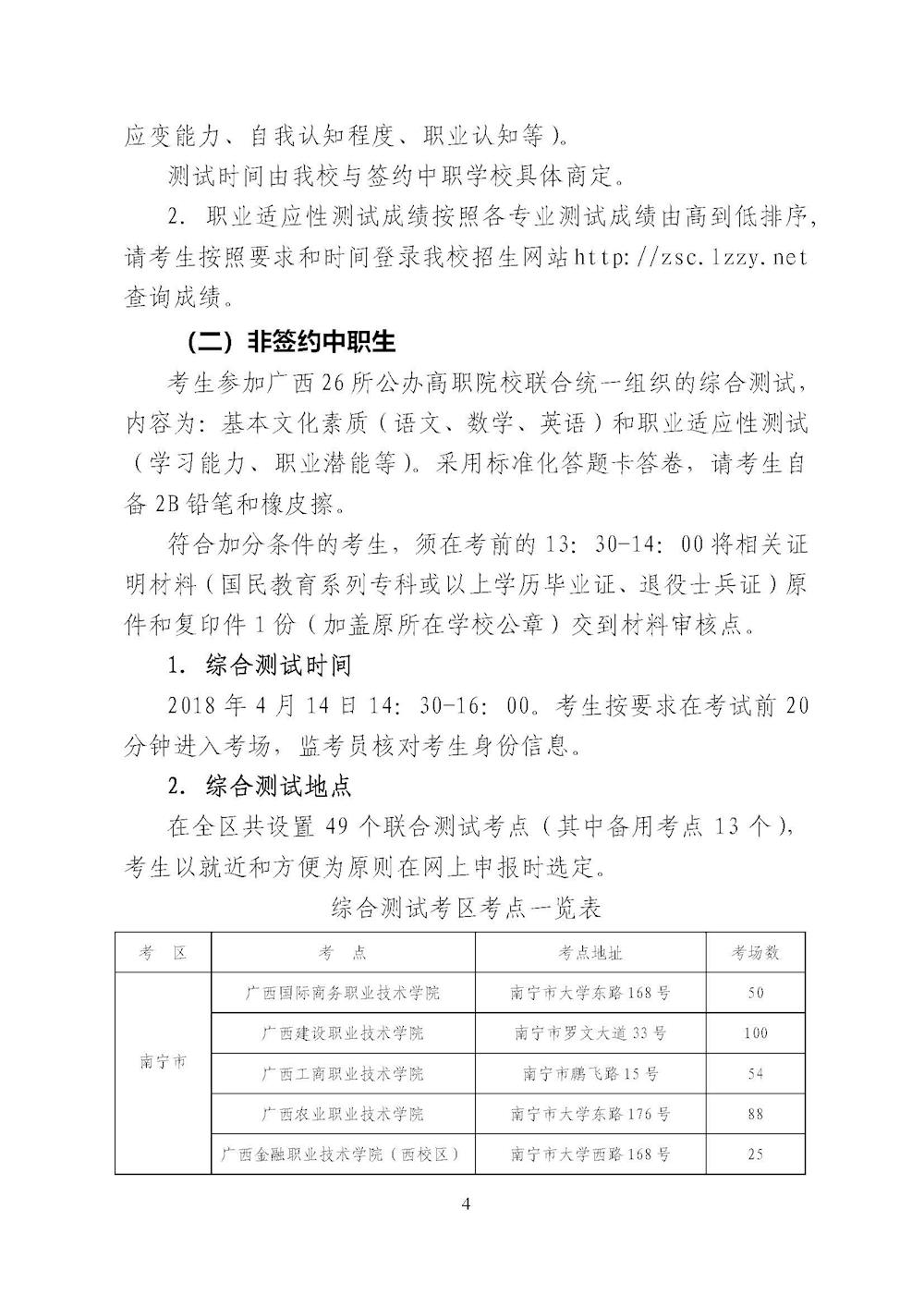 柳州职业技术学院2018年对口招生联合测试章程