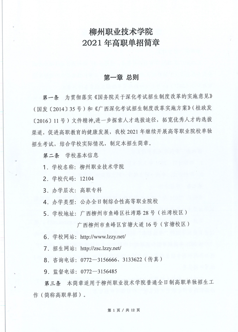 柳州职业技术学院2021年高职单招招生简章 来源:招生办公室 发布时间:2021-03-03 10:00:00 浏览次数: 次 【字体:小 大】 诚信承诺书.docx 终审:招生信息中心 分享到: 【打印正文】