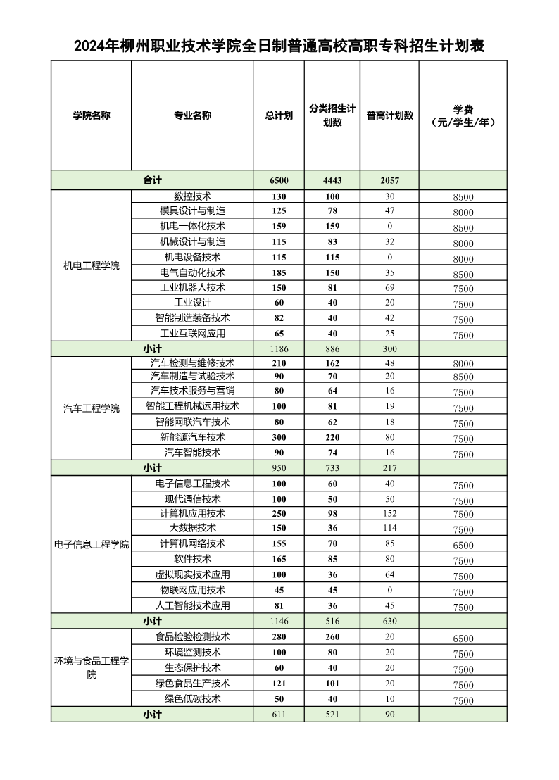 2024年柳州职业技术学院全日制普通高校专科招生计划表【发布于20240318】 来源:招生办公室 发布时间:2024-03-18 16:05:39 浏览次数: 次 【字体:小 大】 终审:招生信息中心 分享到: 【打印正文】