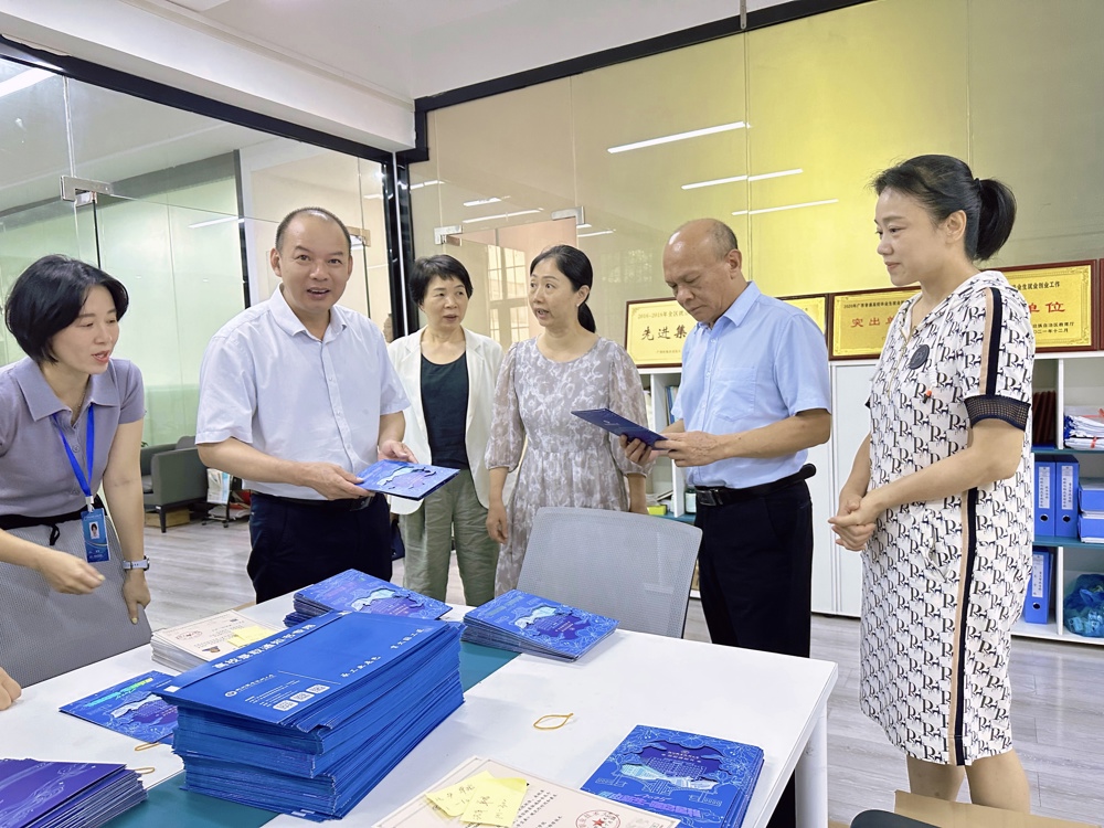 新闻网消息(文/图 招生就业处 覃晓晨)7月23日下午,我校党委副书记、校长甘金明,党委常委、纪委书记李善文到招生就业处调研2025年学校普高招生录取工作情况。