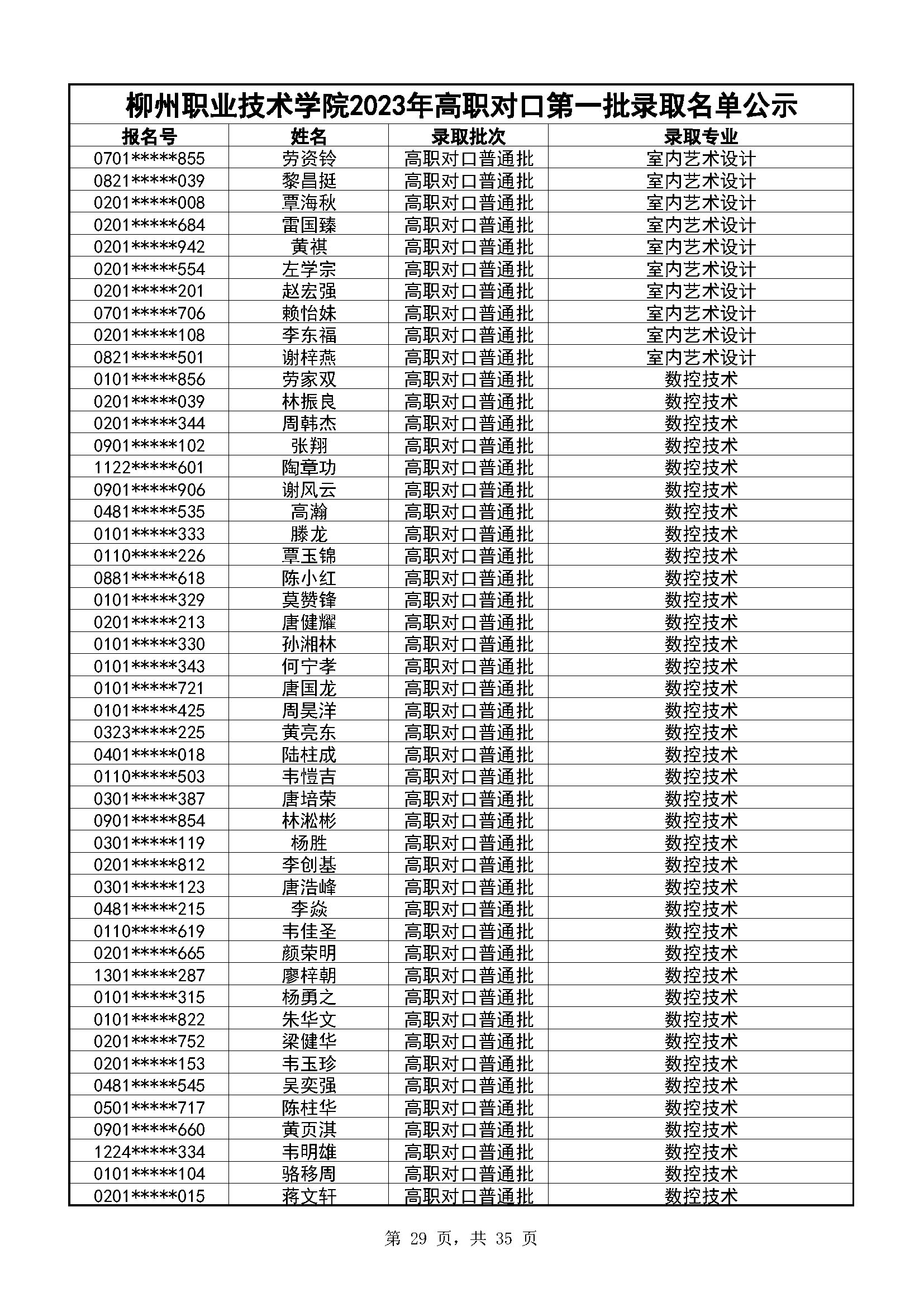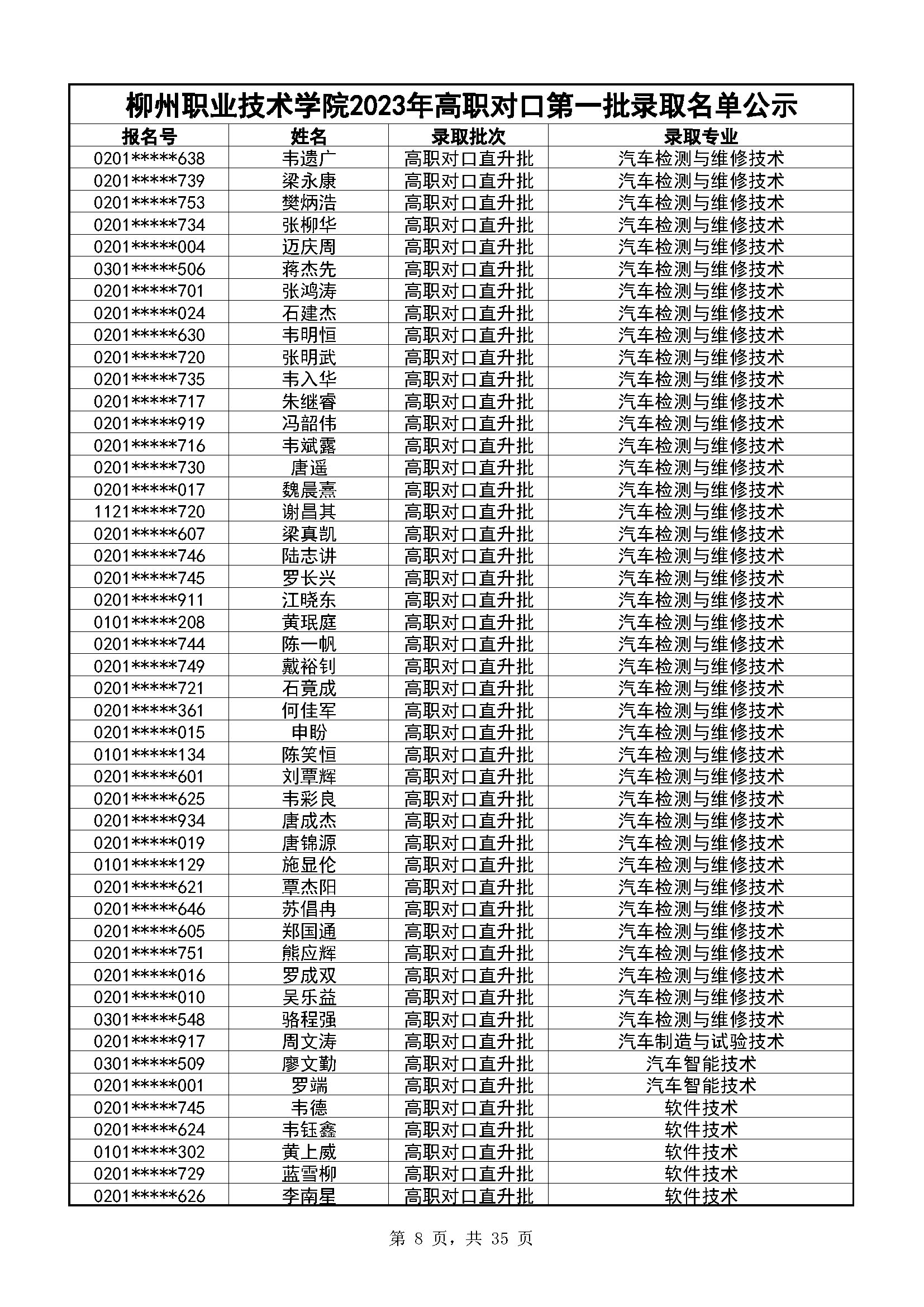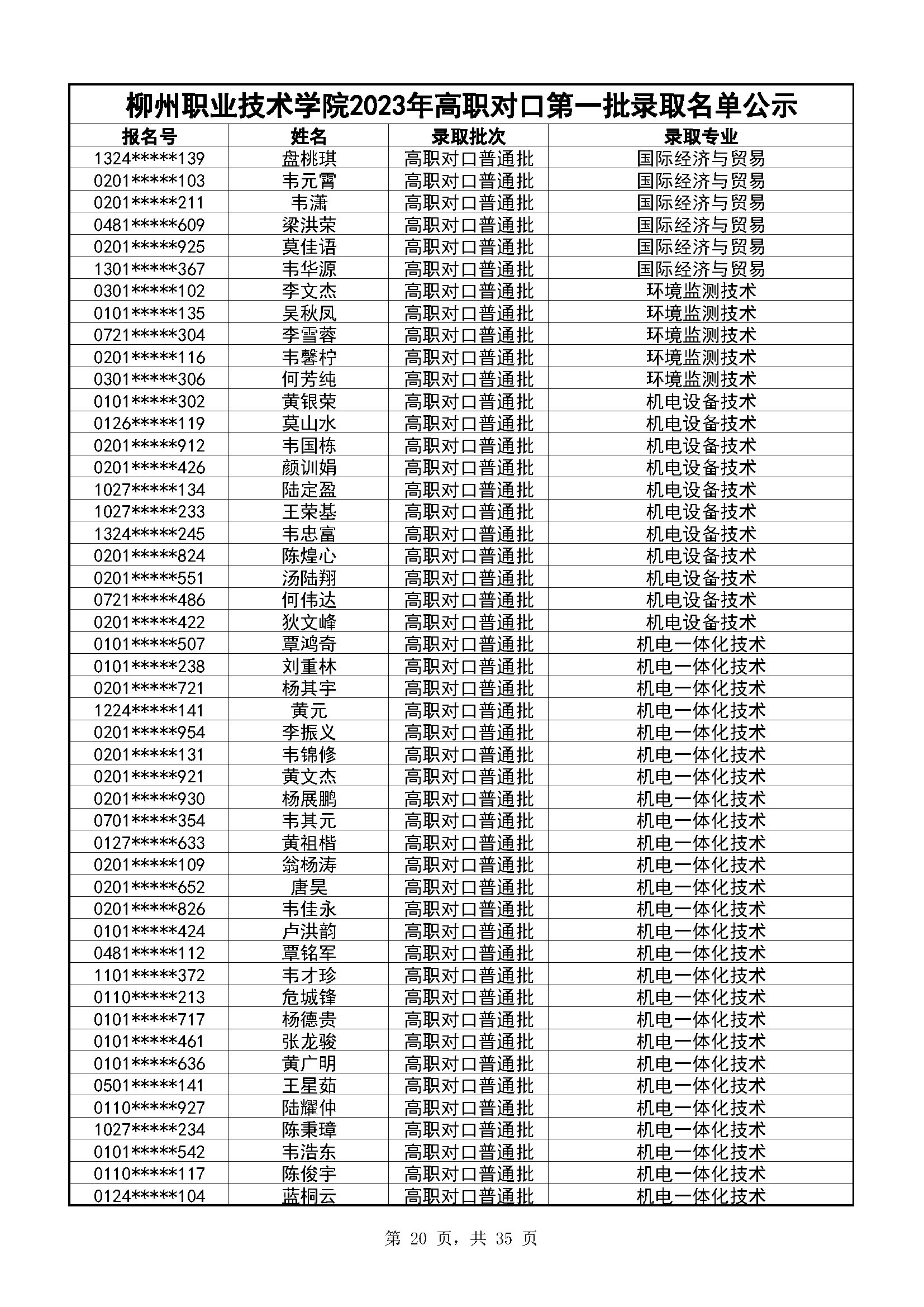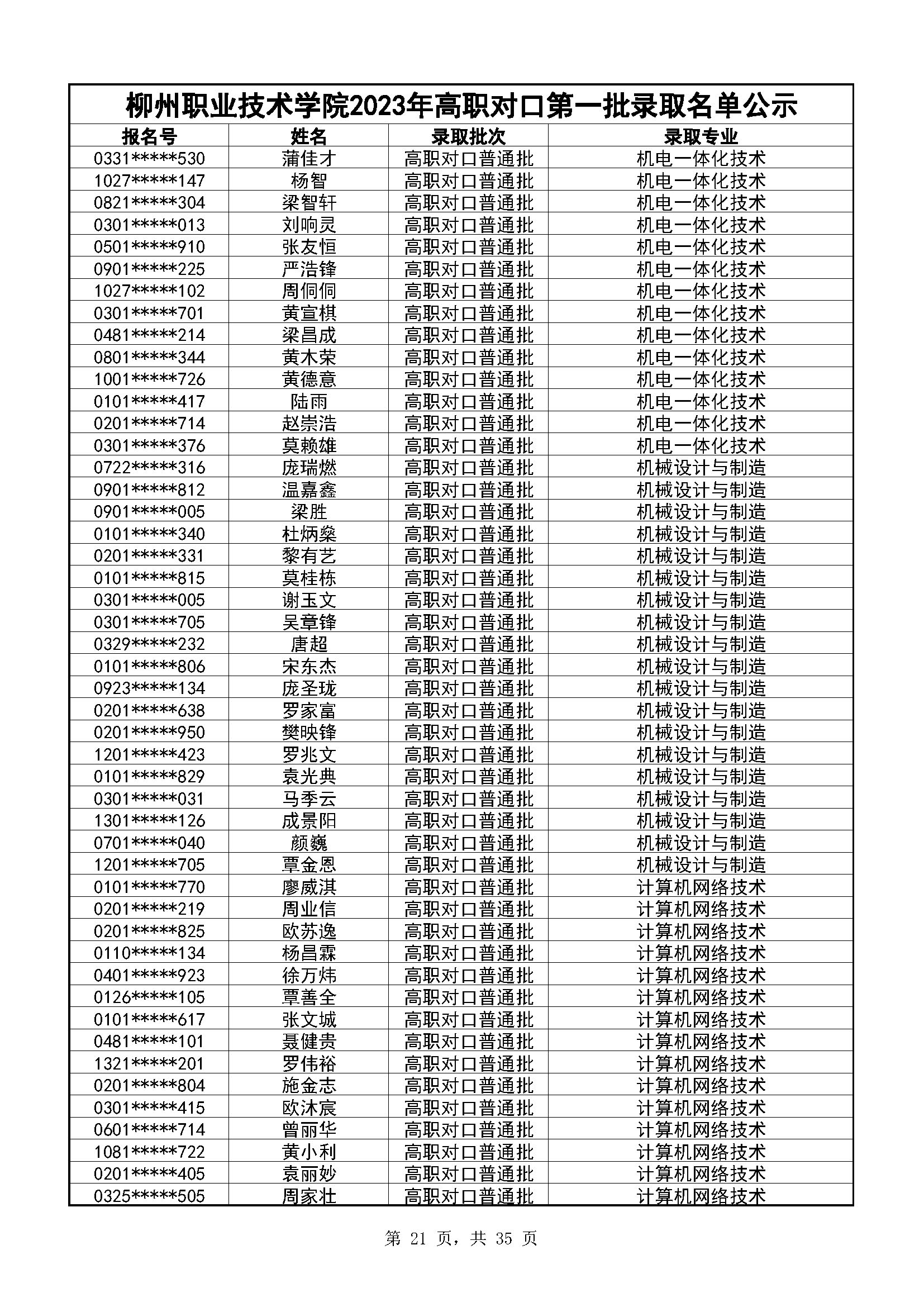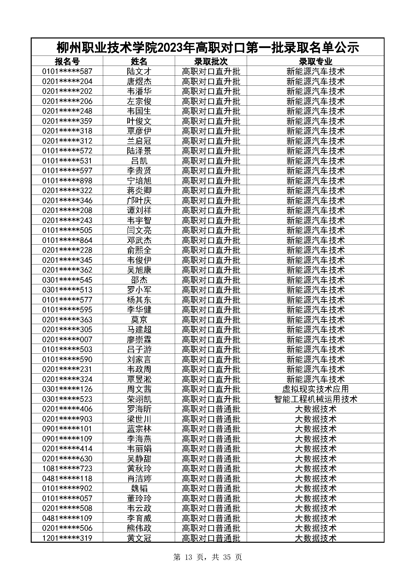 柳州职业技术学院2023年高职对口录取名单公示(第一阶段)
