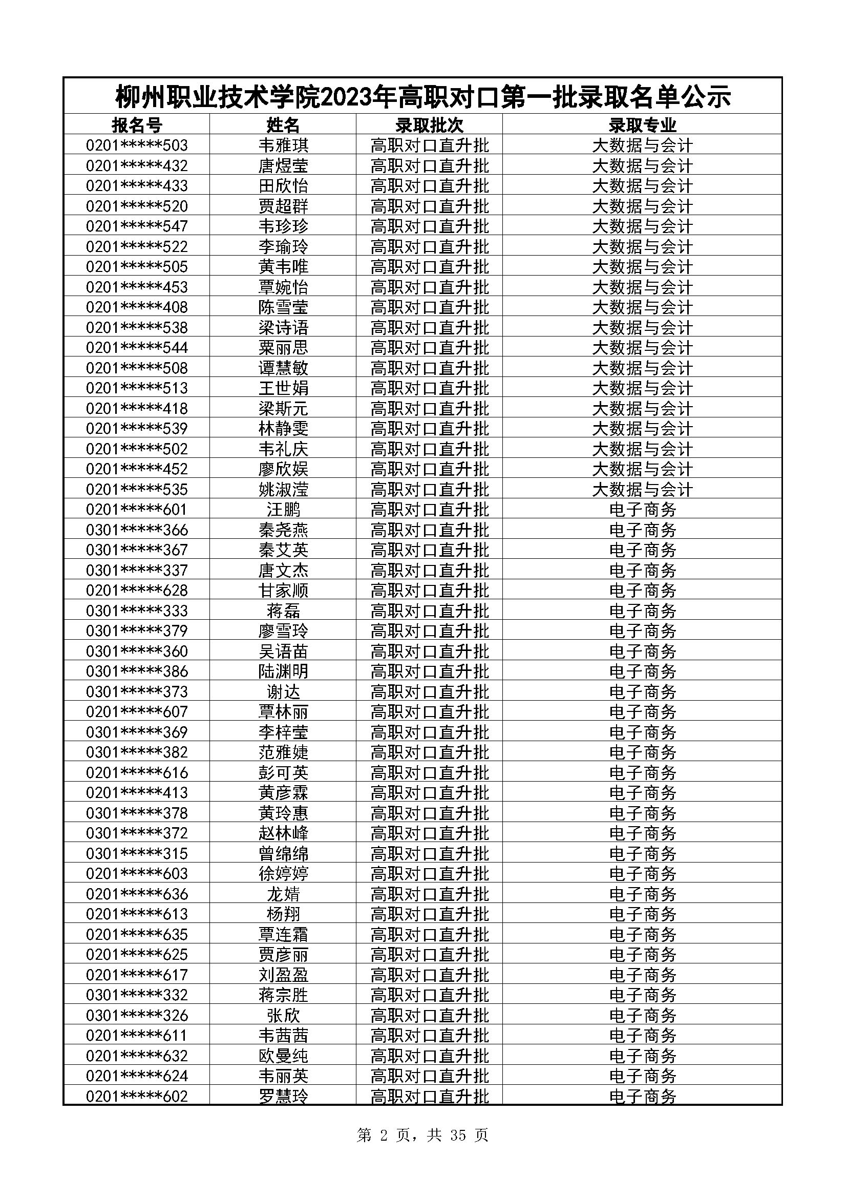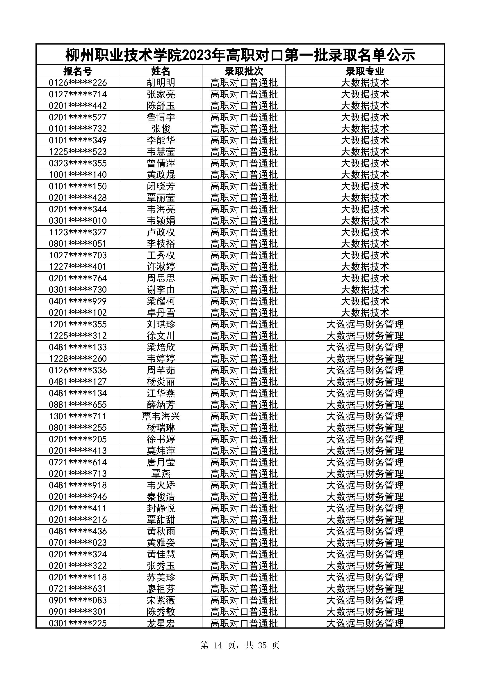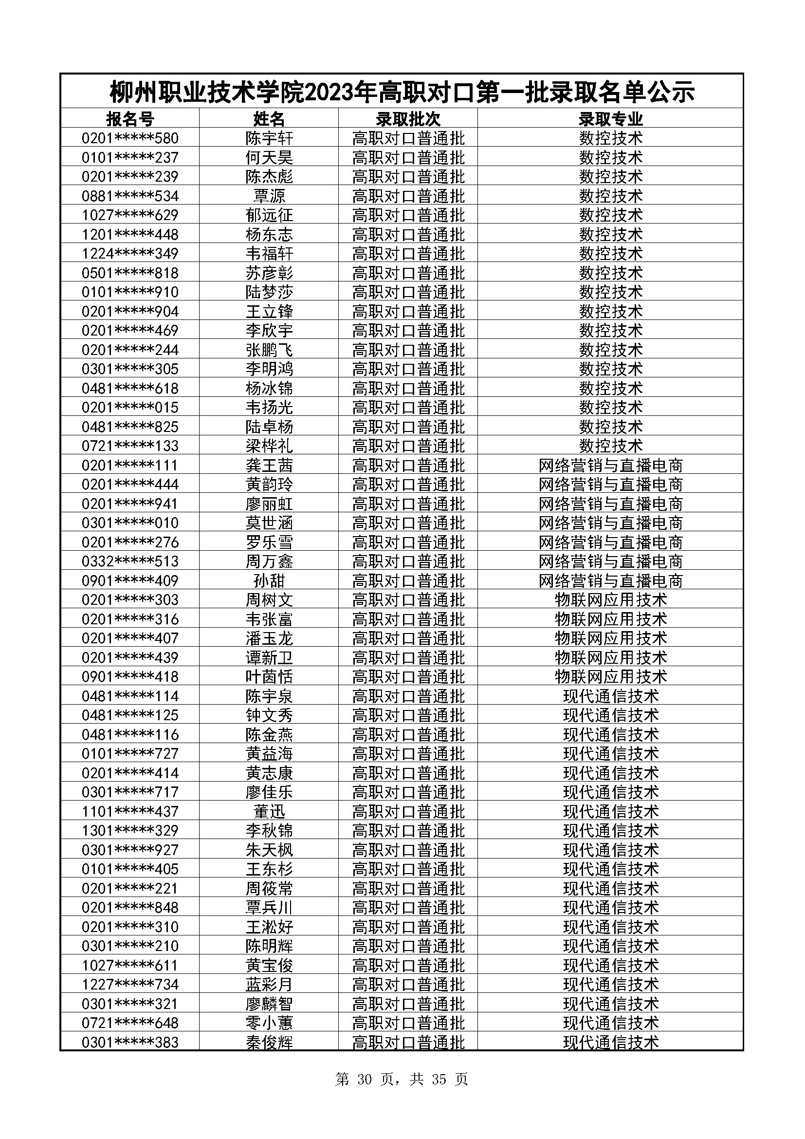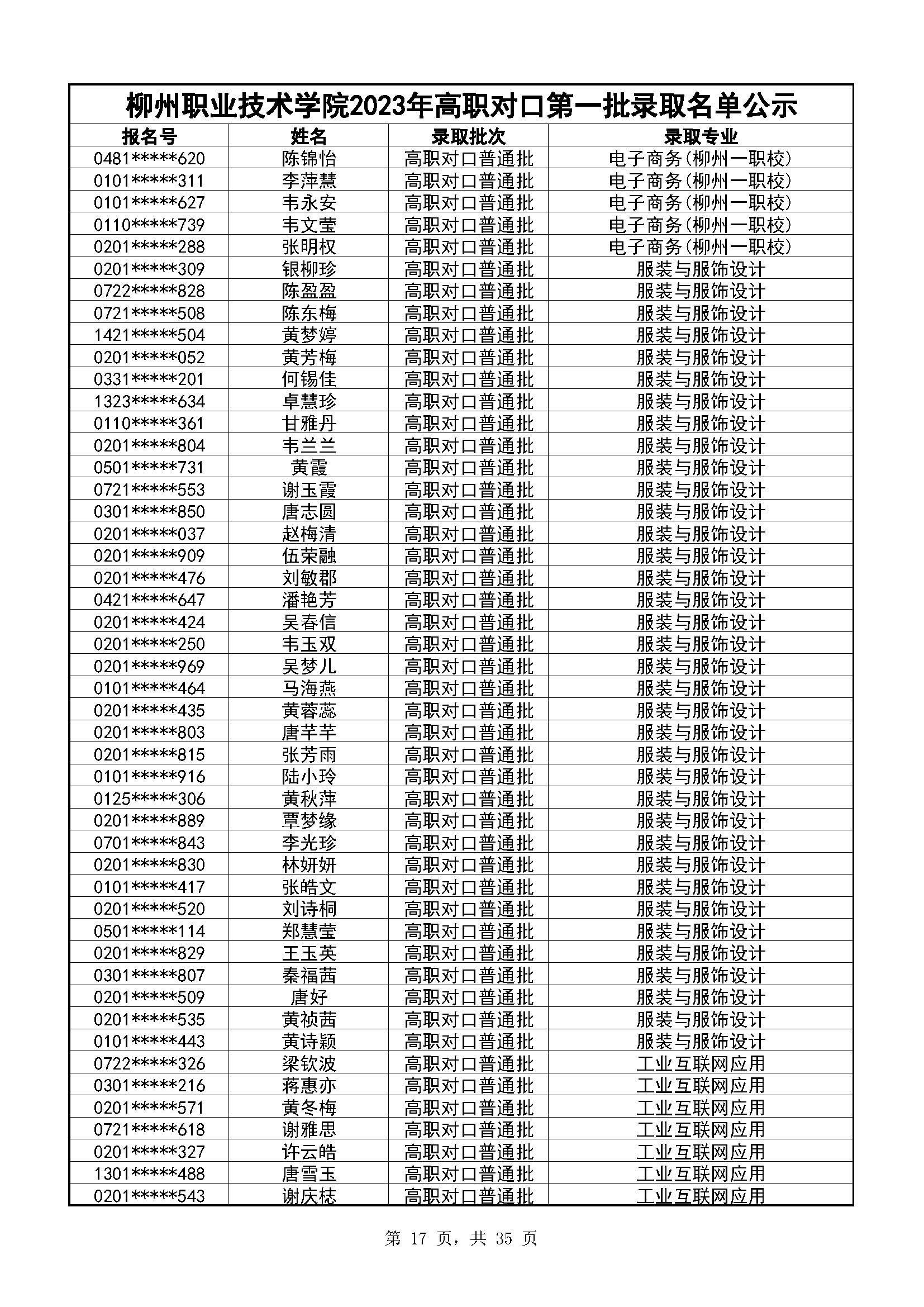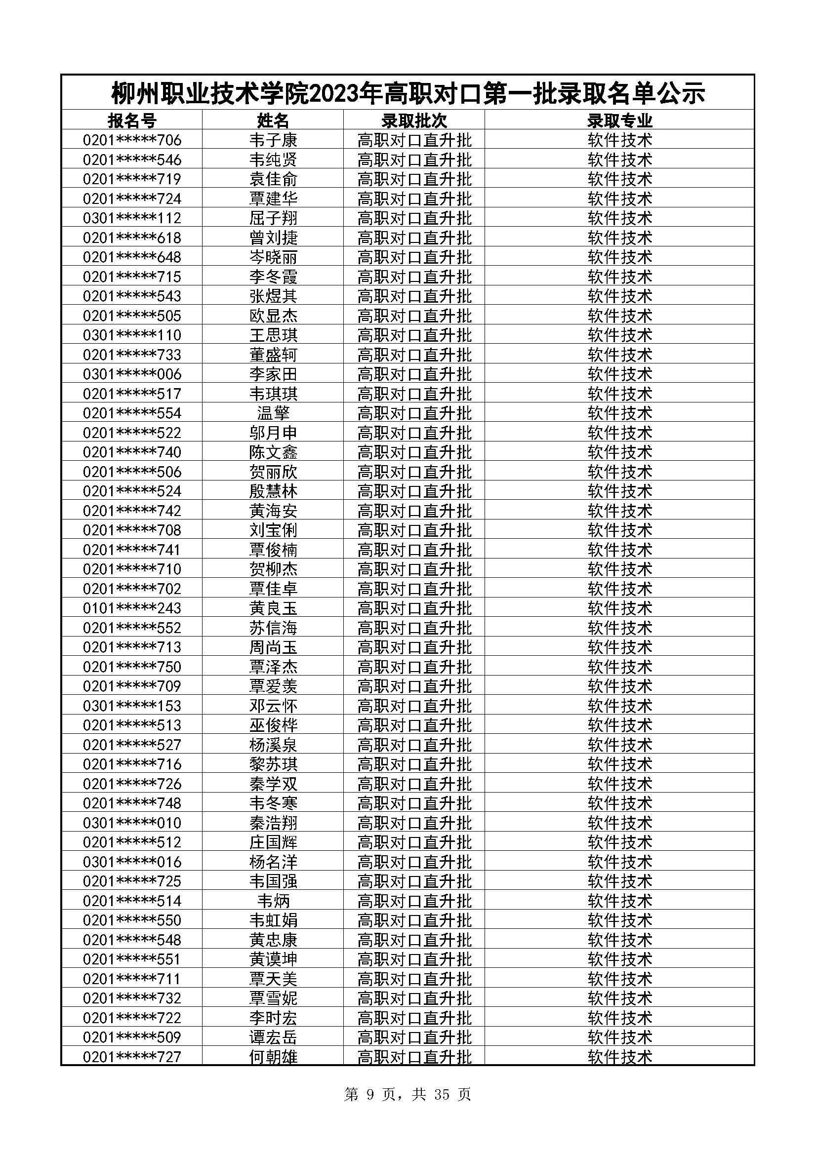 柳州职业技术学院2023年高职对口录取名单公示(第一阶段)