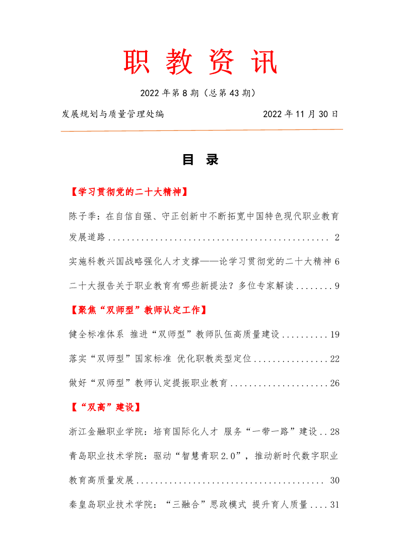 2022年第8期《职教资讯》(总第43期)