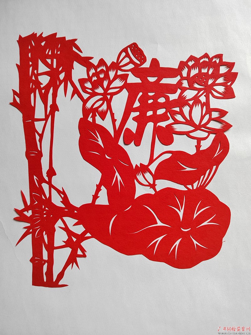 “出淤泥而不染,濯清涟而不妖,中通外直,不蔓不枝,香远益清,亭亭净植,可远观而不可亵玩焉”,这是古人对“莲”的热爱,亦是对“廉”的称颂。图为仫佬族剪纸作品《出淤泥而不染》。