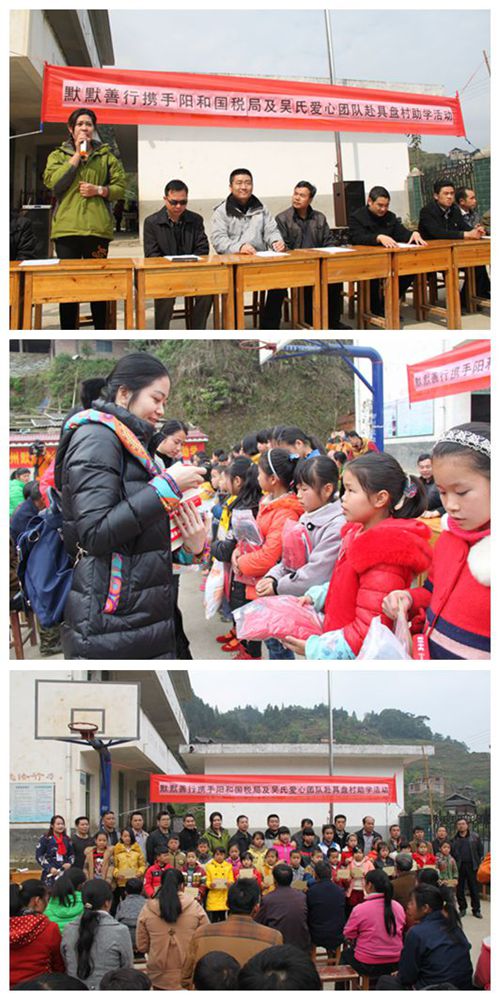 新闻网消息(通讯员/机电系 陈勇棠 图/何志立)3月26、27日,来自柳州市默默善行公益组织、柳州市阳和国税局、吴氏爱心团队等单位或团体的爱心助学人士共32人,来到位于广西与贵州省交界的独峒乡具盘村进行助学活动,为该村25位品学兼优的贫困学生送去助学金、书籍、鞋子衣物、篮球等一批价值近10000元的物资,为山村的孩子带来温暖和希望。
